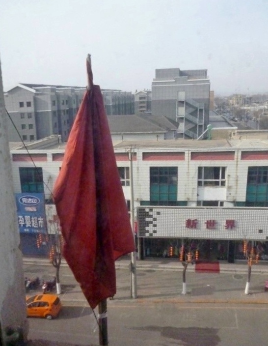可今年元旦,血旗挂出来,我就没在意,也没想到去发正念清除,一直到了一月十七日,一同修来我家切磋事情,发现外面飘着的血旗,说:“你没发正念清除它吗?”我说:“我还真的没想到对它发正念。”