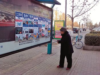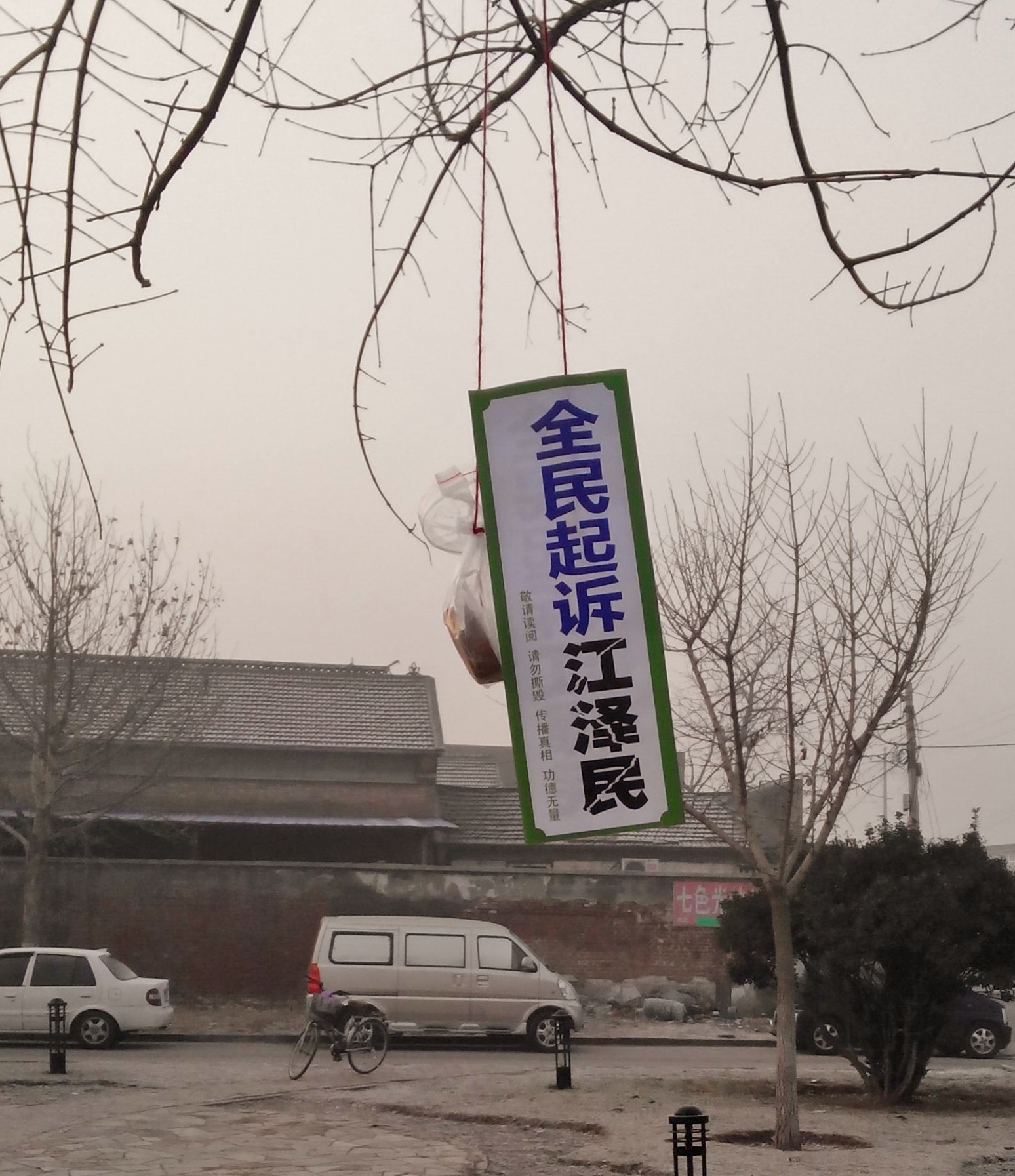 【明慧网二零一六年一月二十三日】二零一六年新年期间,中国大陆从北到南许多城镇的街头巷尾、居民住宅区、集市出现“法办江泽民”的展板,吸引路人驻足观看。