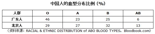 3、血型配型几率