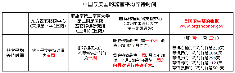国外等一个器官要以年计,而中国各大移植中心网站公开声称器官等待时间只要几天或几周(见附录2),有的直接说是器官是“活体”,失败了可以接着做(见附录3)。这是在人类器官移植领域不可思议的现象。