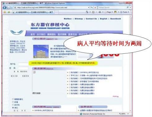 [140]天津东方器官移植中心:“病人平均等待时间为两周”. 原网站已被关闭, 存档链接: https://archive. is/L0A9W