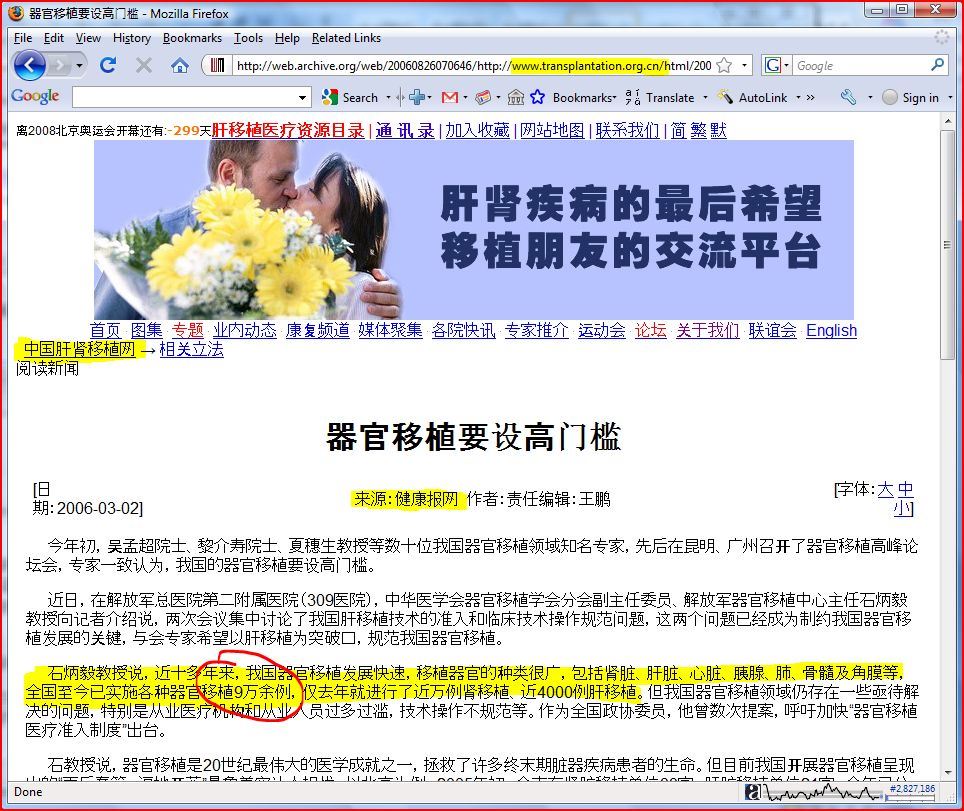 [67]四川大学华西医院肝移植中心主任严律南受访. 健康时报, 2006-06-19, https://archive.is/RaPvb