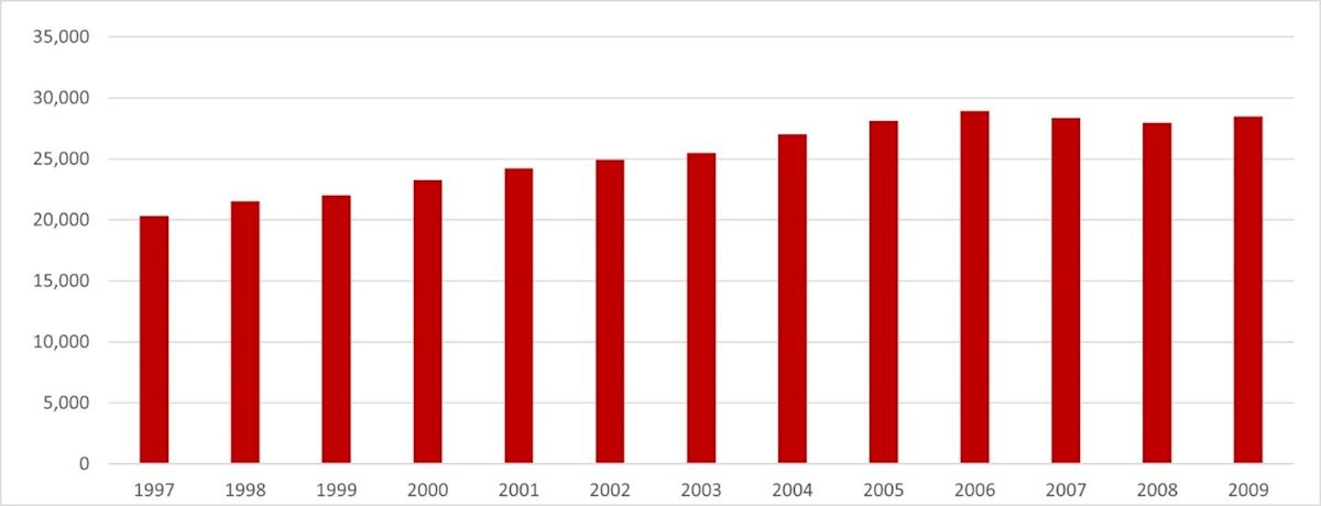 [148]Dr. Lilyanna Trpeski. Report on CORR Performance and Recent Trends in Donor, Transplant and Waiting Statistics in Canada-Preliminary Results (加拿大1997-2007器官移植数量图), https://slideplayer. com/slide/5747015/, slide 28)