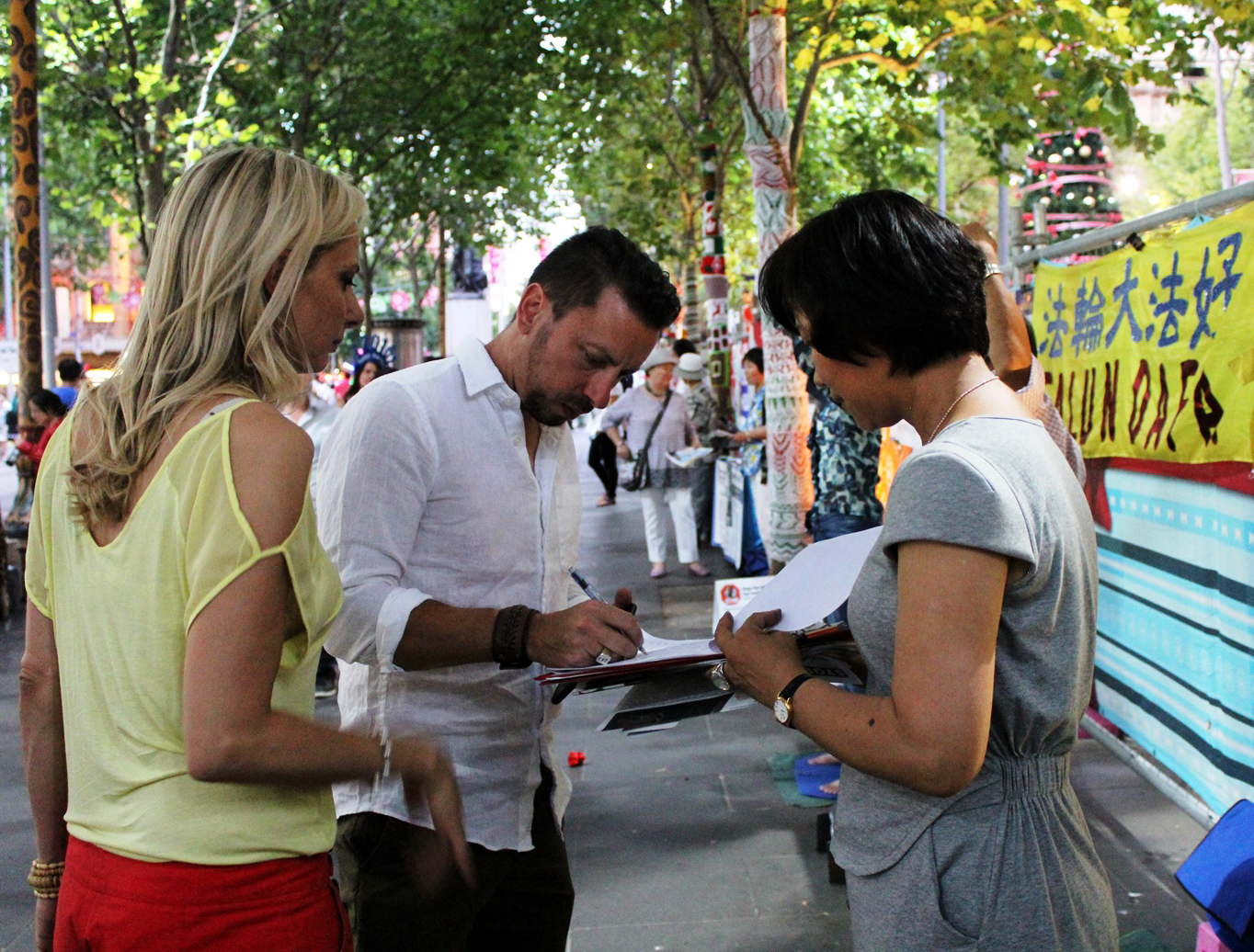 来自墨尔本周边海滨城市吉朗的医生雷哈德(Daniel Reichard)和友人沙哈(Ofar Shahar),也称赞法轮功学员反迫害的活动很好,雷哈德说:“把江泽民告上法庭是个好主意,法轮功学员今晚的活动也很好,可以让人们了解中国发生了什么。我是第一次听说,太糟糕了,太残忍了,他们这是在屠杀。”