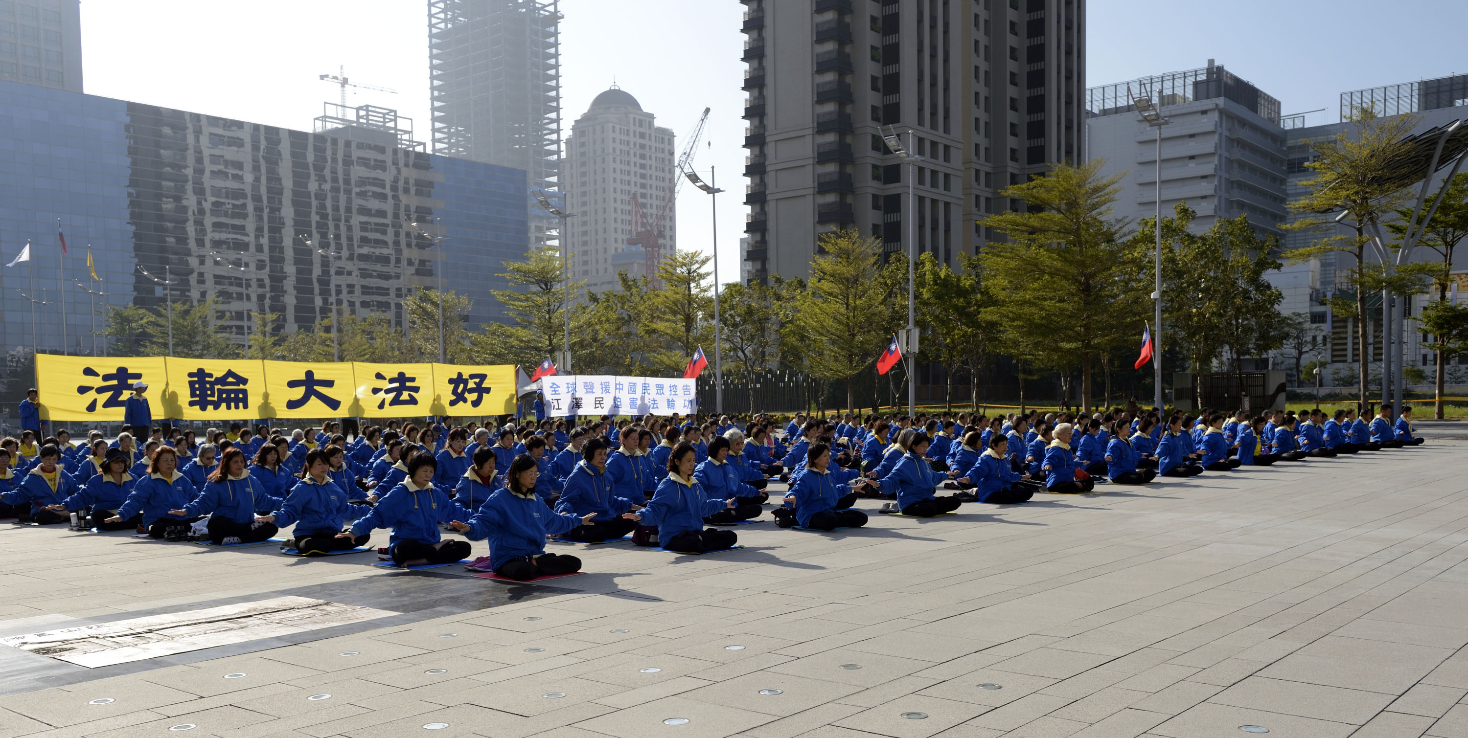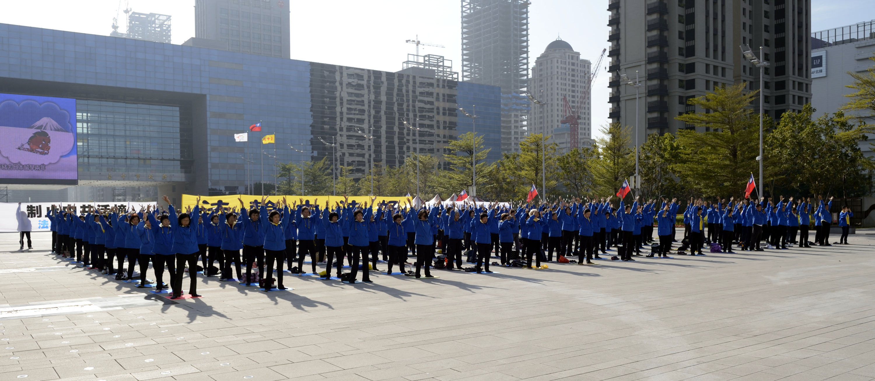 ![]() 二零一六年元旦,台中市法轮功学员在市政府广场上炼功 |