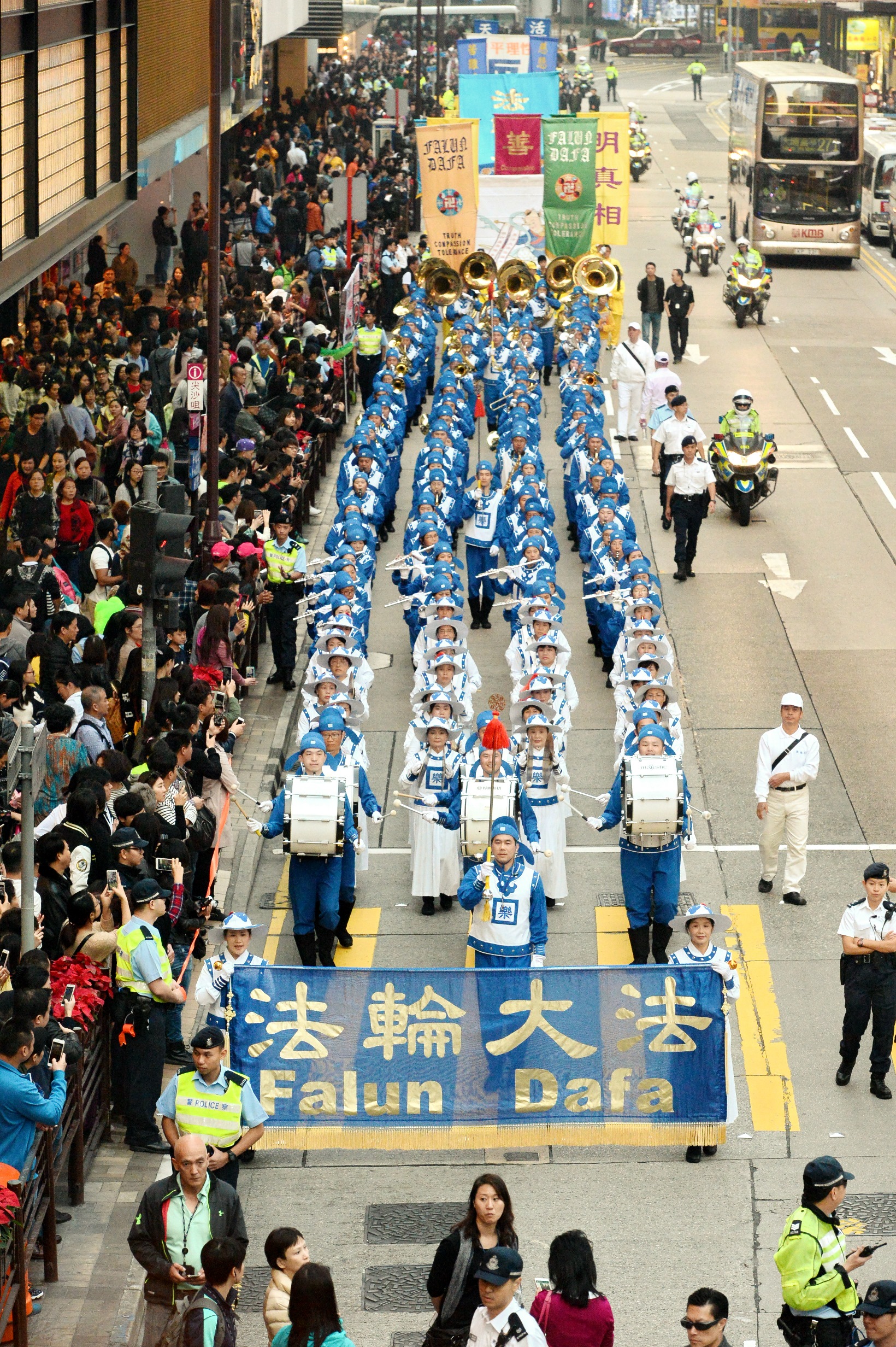 新年期间街道两旁挤满游客和市民,虽然青关会沿途滋扰游行,但影响不了民众观看游行的热切。许多人脸上带着欣喜的笑容,拿着手机、相机拍下游行场面。大陆游客郭先生来香港几次了,他表示这是第一次看到法轮功学员的游行,觉得很惊讶也感到幸运。郭先生说:“这真的是第一次看到,我不知道怎么形容我的感觉。觉得很幸运,很难见到这么大场面的。”他手上拿着一份《明慧周刊》,表示会回去多多了解法轮功。