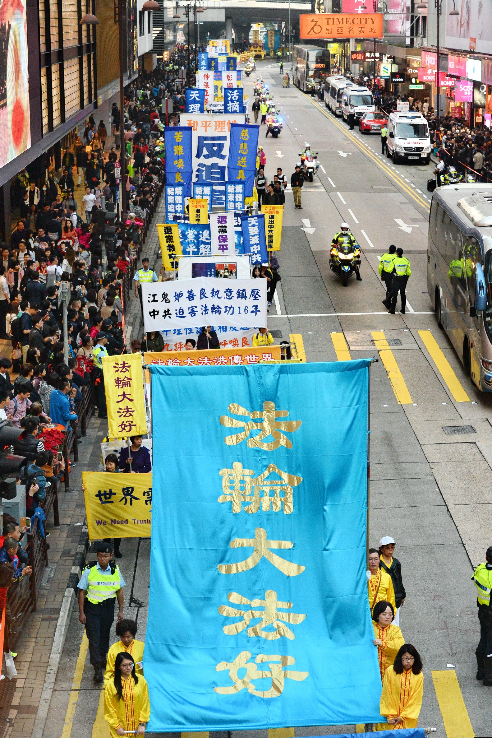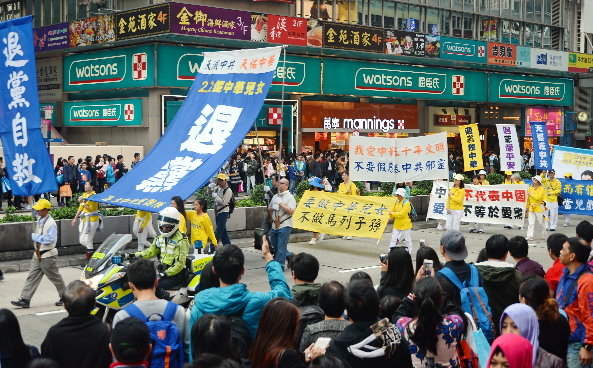 学员们还通过集体炼功和游行的方式,向香港市民和观光旅客传递“法轮大法好”的福音,以及遭受中共无理迫害的真相,集会当场及游行沿途都有中国大陆游客声明退出中共党团队。