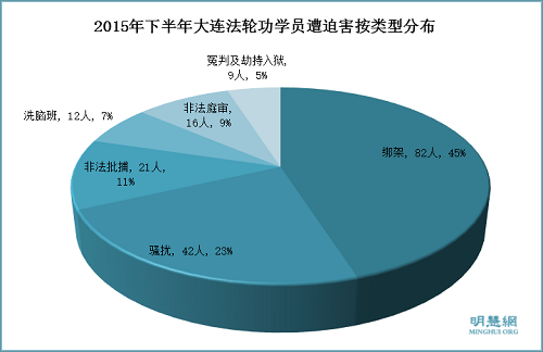 2015年下半年大连地区遭绑架的法轮功学员是八十二人,其中因诉江遭绑架十六人。