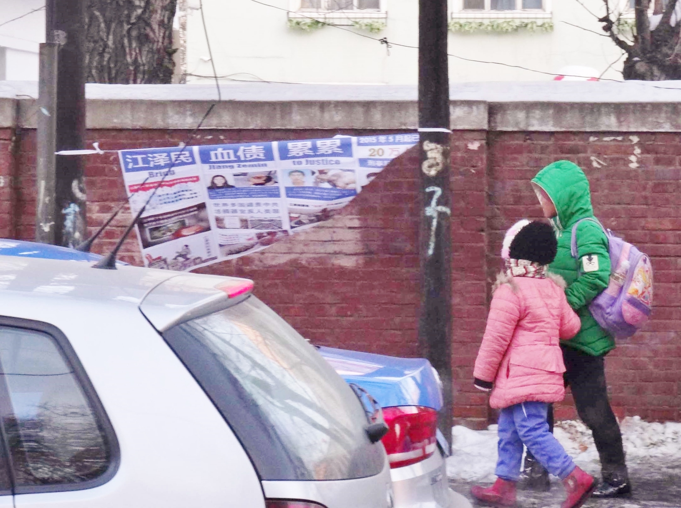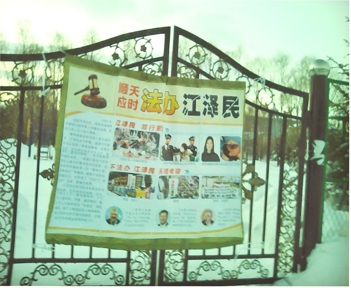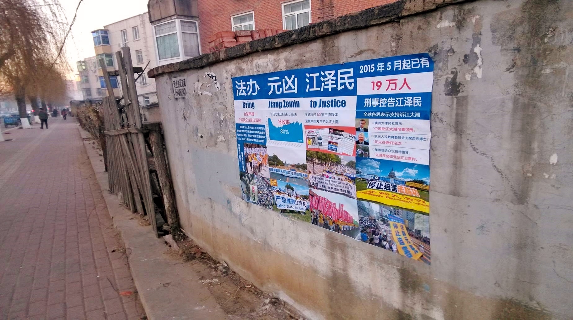 二零一六年新年伊始,在河北、黑龙江、辽宁、山东等地,不少城镇乡村都出现了“诉江展板”,以图文的形式告知人们江泽民对法轮功学员的残酷迫害的事实,以及海外各国民众和正要对于诉江的支持。