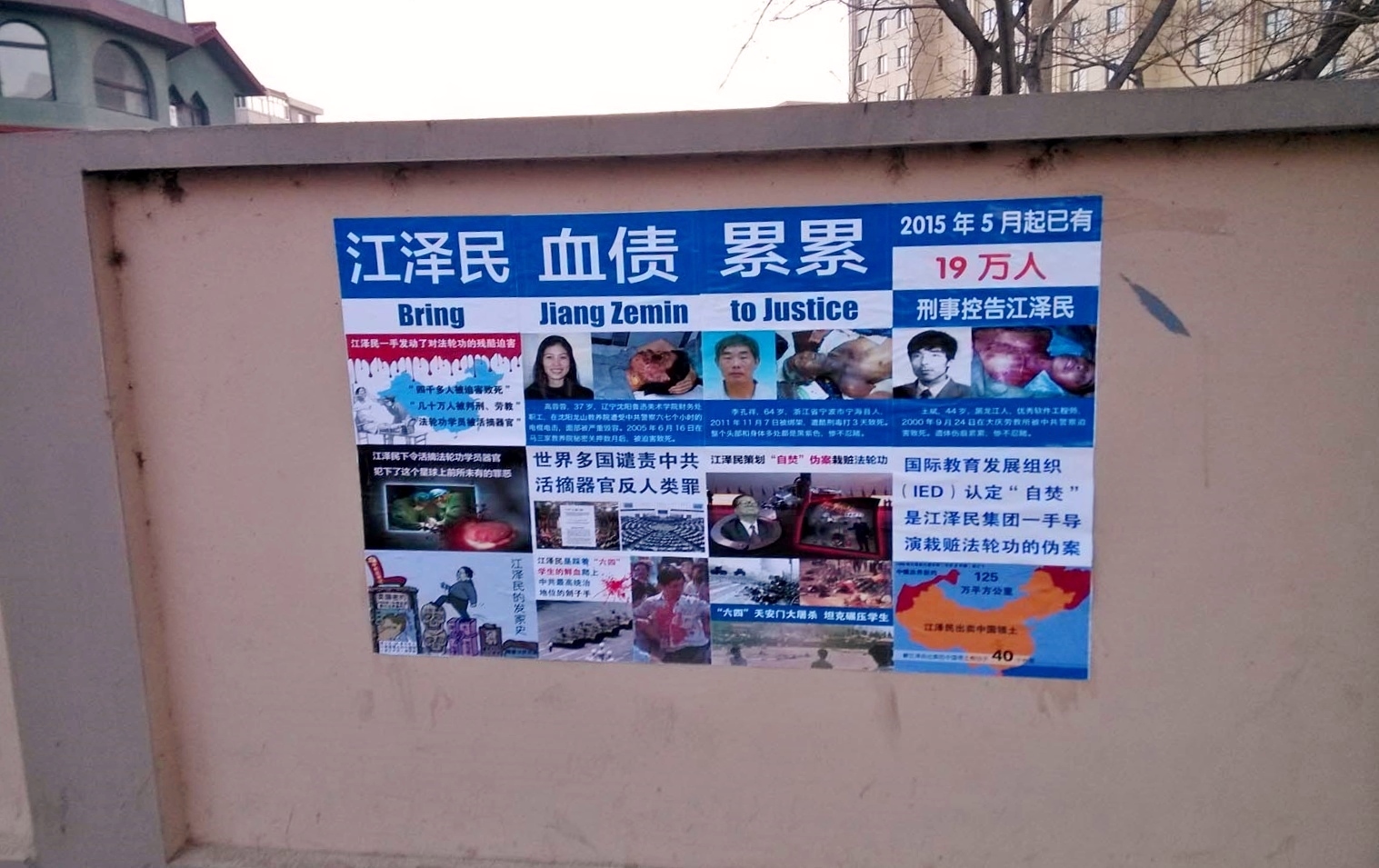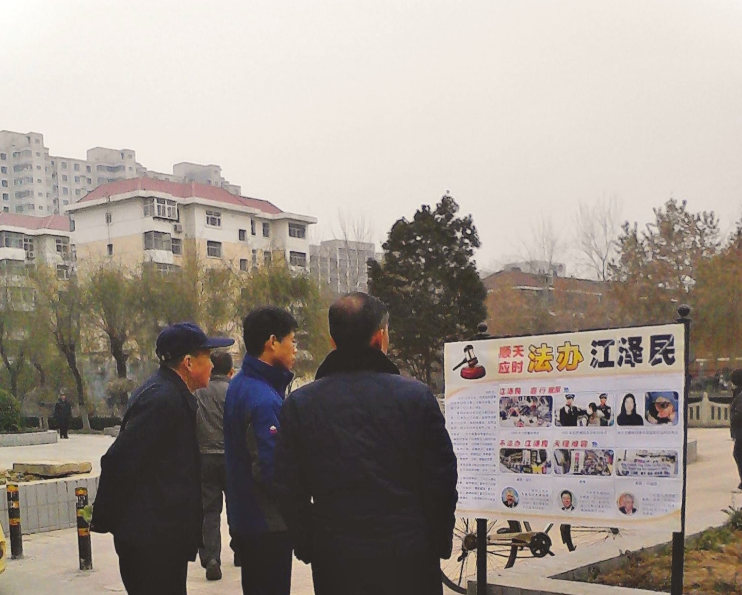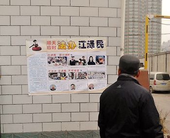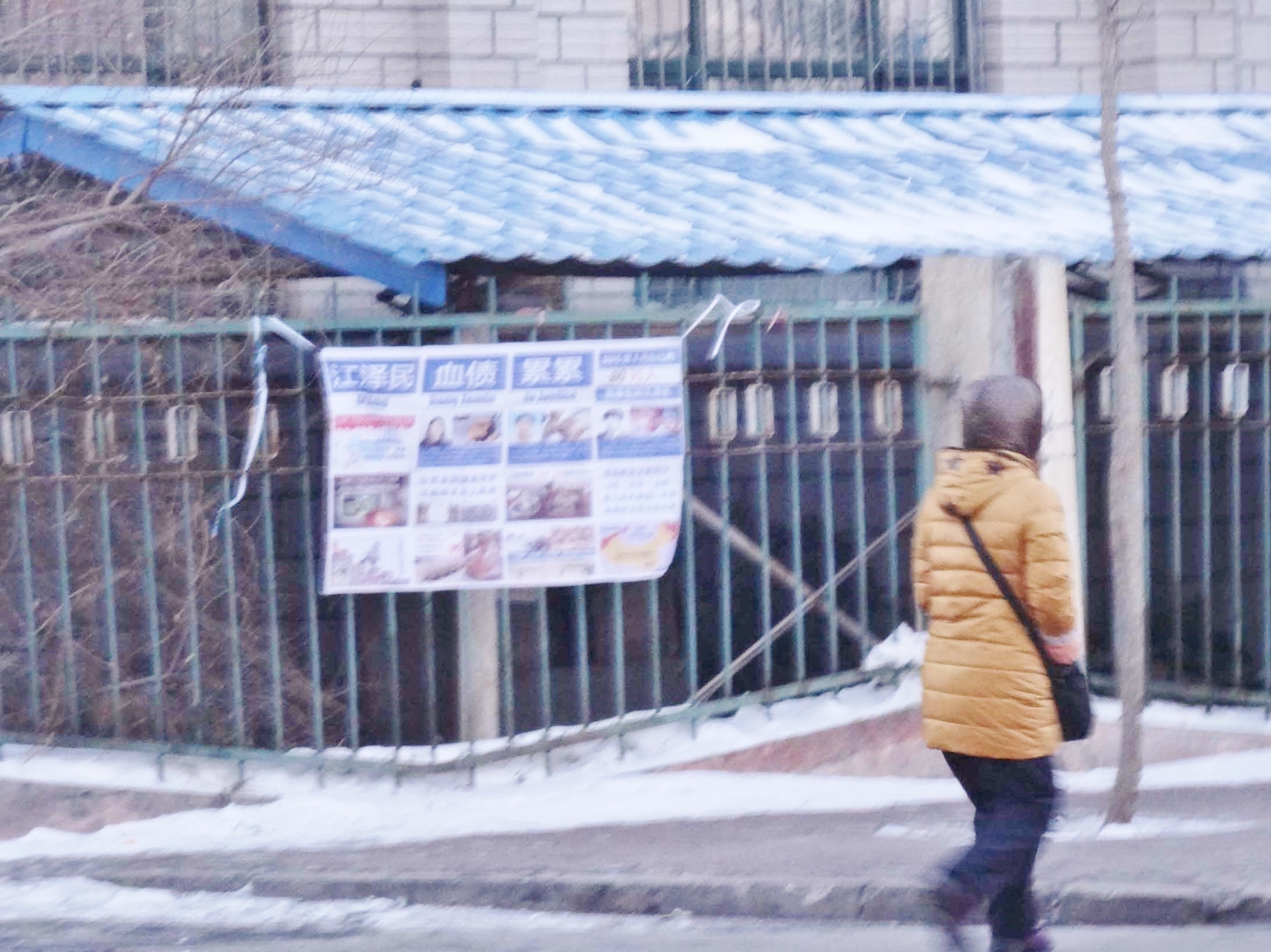 二零一六年新年伊始,在河北、黑龙江、辽宁、山东等地,不少城镇乡村都出现了“诉江展板”,以图文的形式告知人们江泽民对法轮功学员的残酷迫害的事实,以及海外各国民众和正要对于诉江的支持。