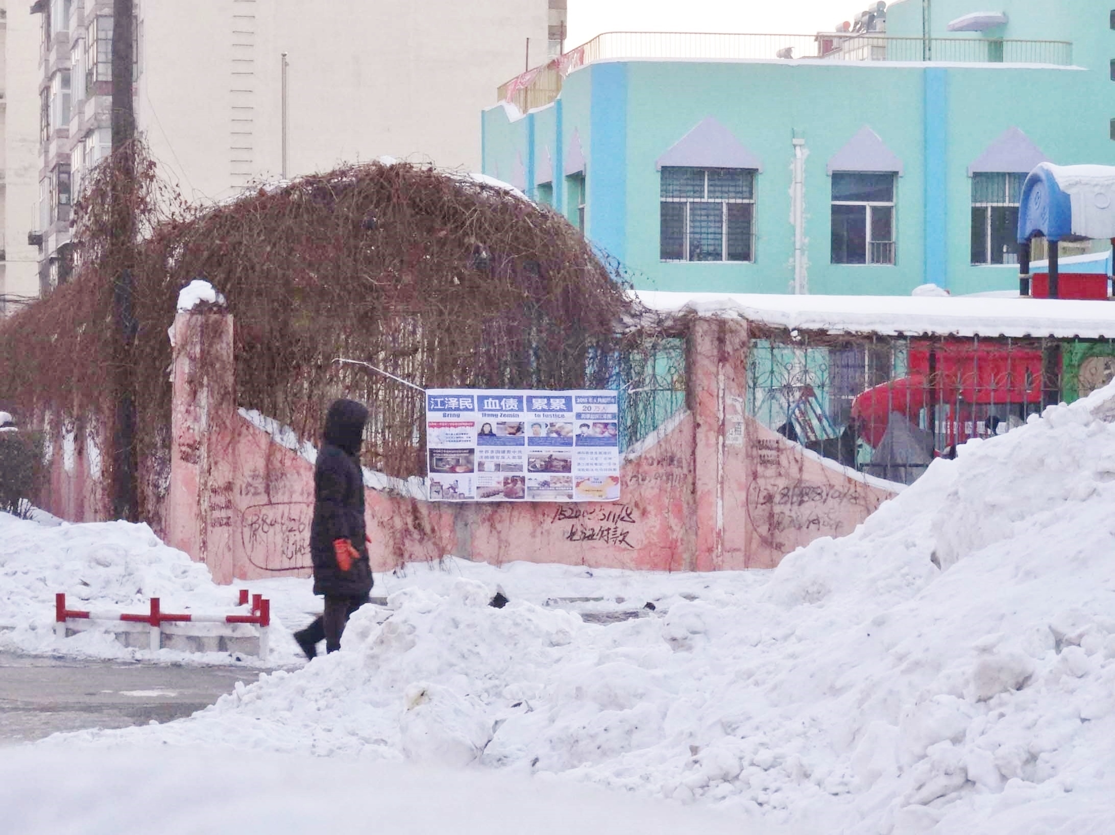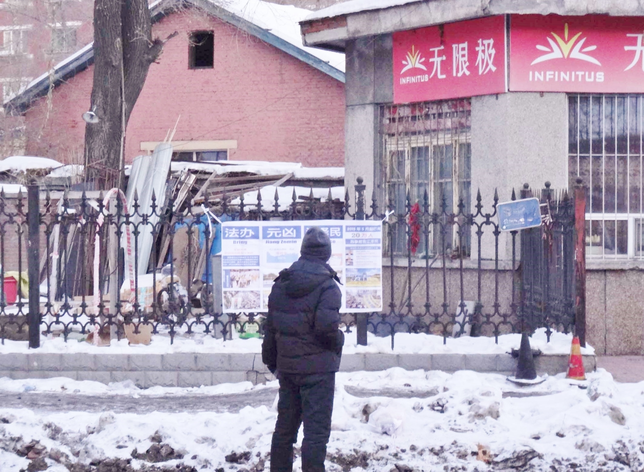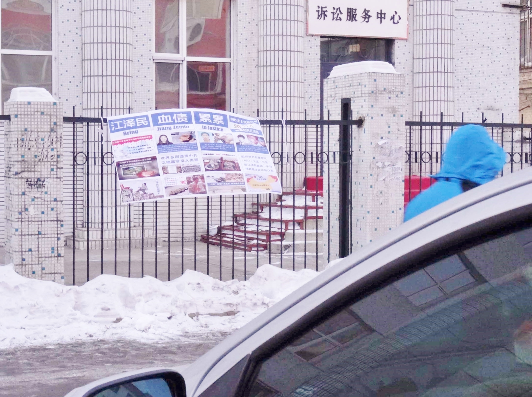 黑龙江省虎林市偏远的边陲小镇见到诉江展板