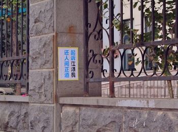 辽宁省葫芦岛兴城市一些小区和主要街道出现诉江展板
