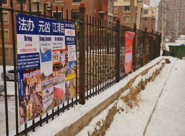 二零一六年新年伊始,在河北、黑龙江、辽宁、吉林、山东等地,不少城镇乡村都出现了“诉江展板”,以图文的形式告知人们江泽民对法轮功学员的残酷迫害的事实,以及海外各国民众和政要对于诉江的支持。