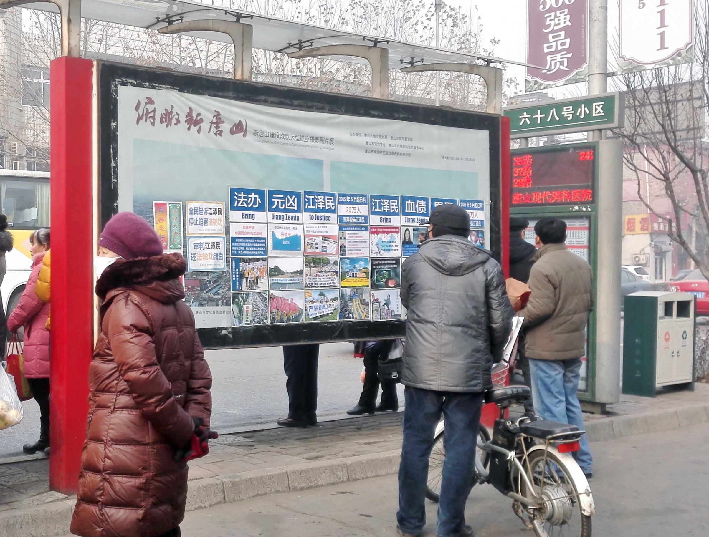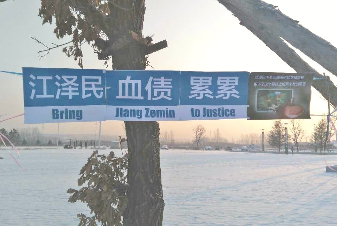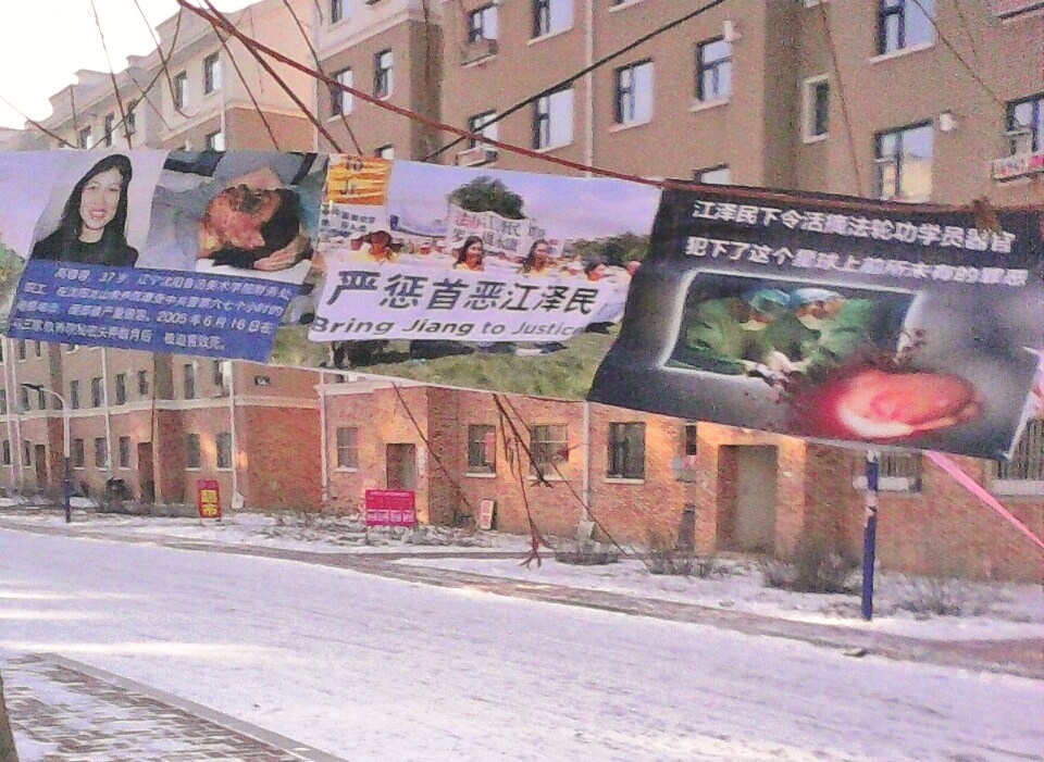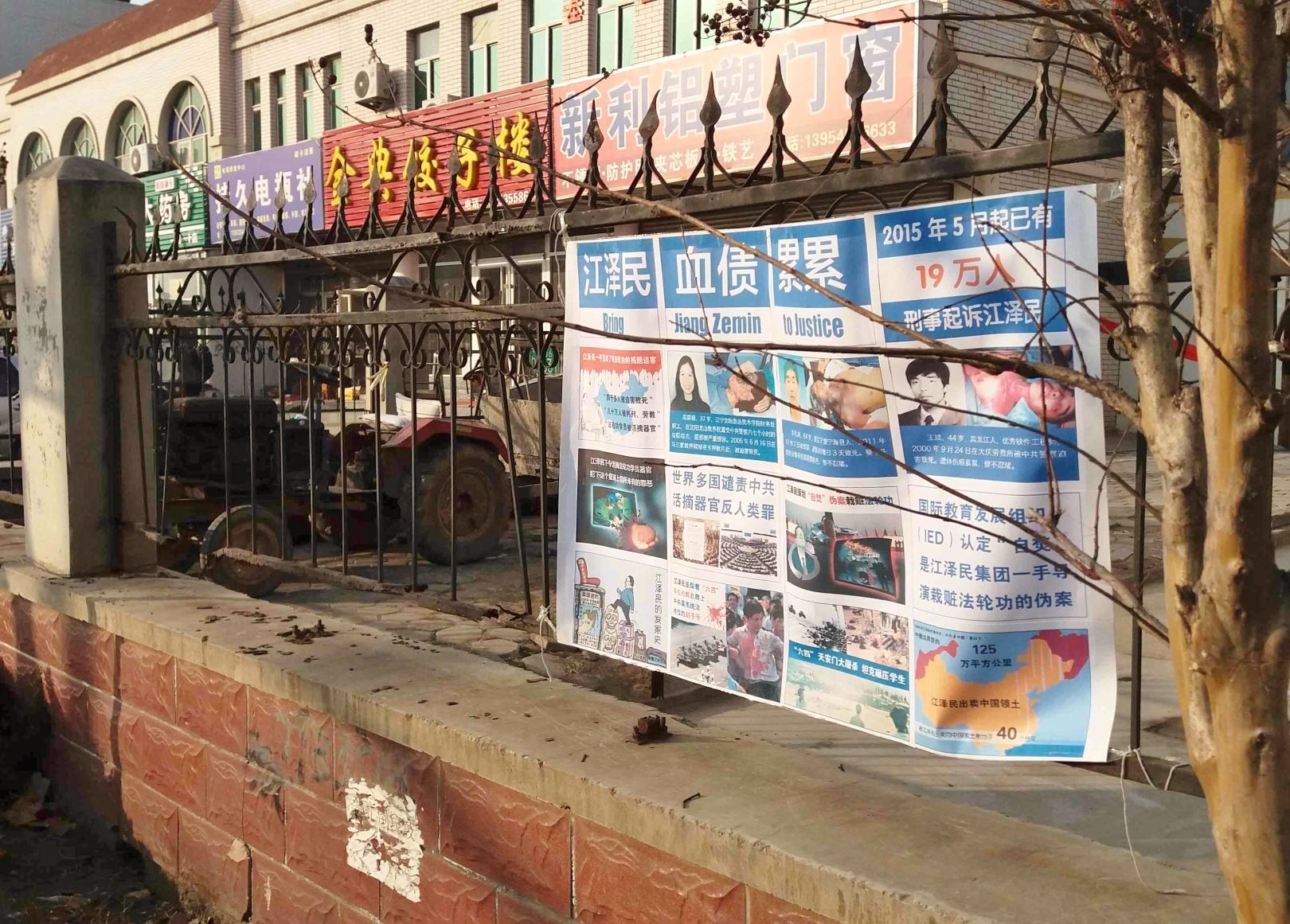 河北唐山街头现法办江泽民展板
