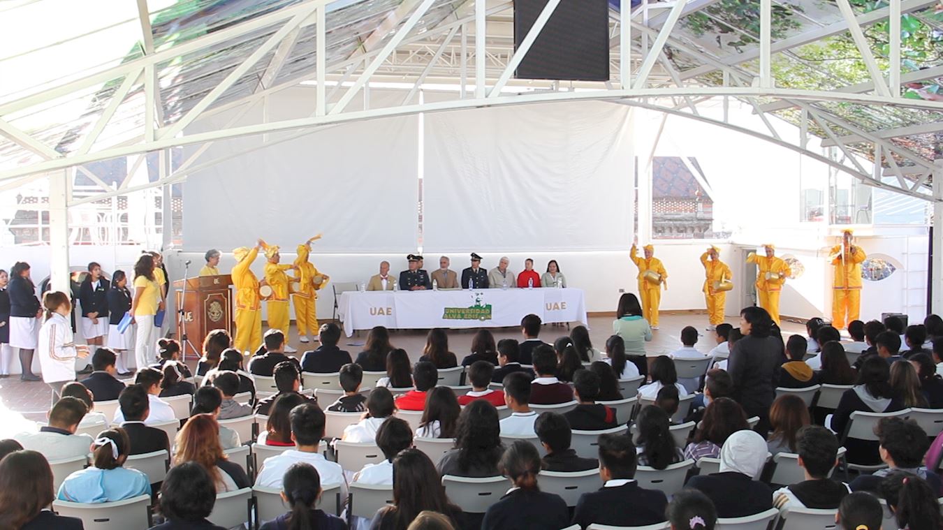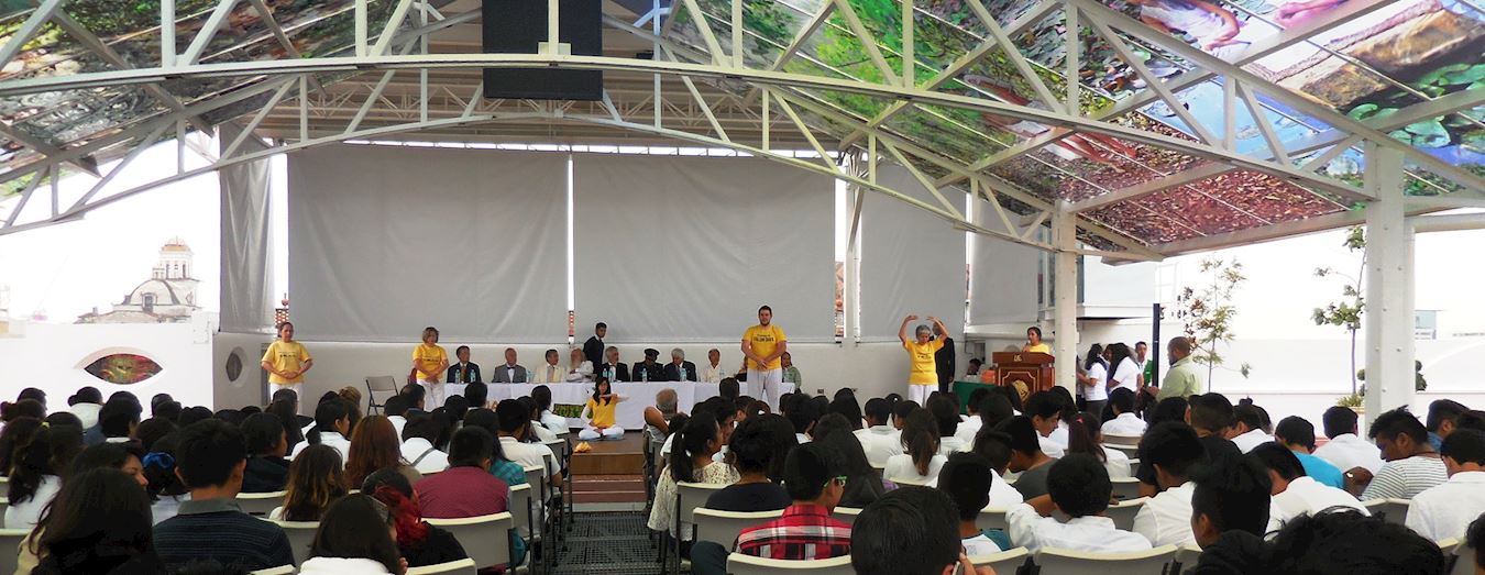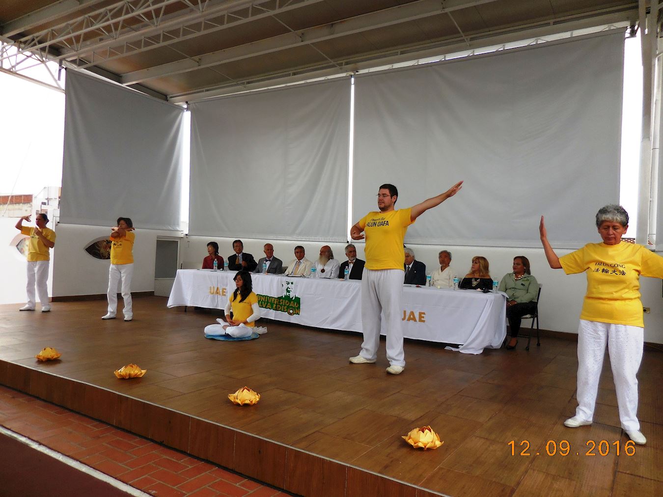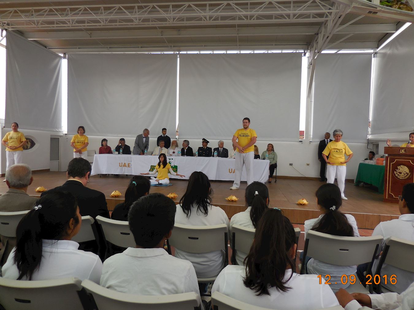 【明慧网二零一六年十月十一日】十月三日,在每月举行的首次教育仪式上,墨西哥法轮功学员在普埃布拉市(City of Puebla)艾尔瓦·爱迪生大学向学生们传授法轮功的功法,受到学生们的欢迎。
