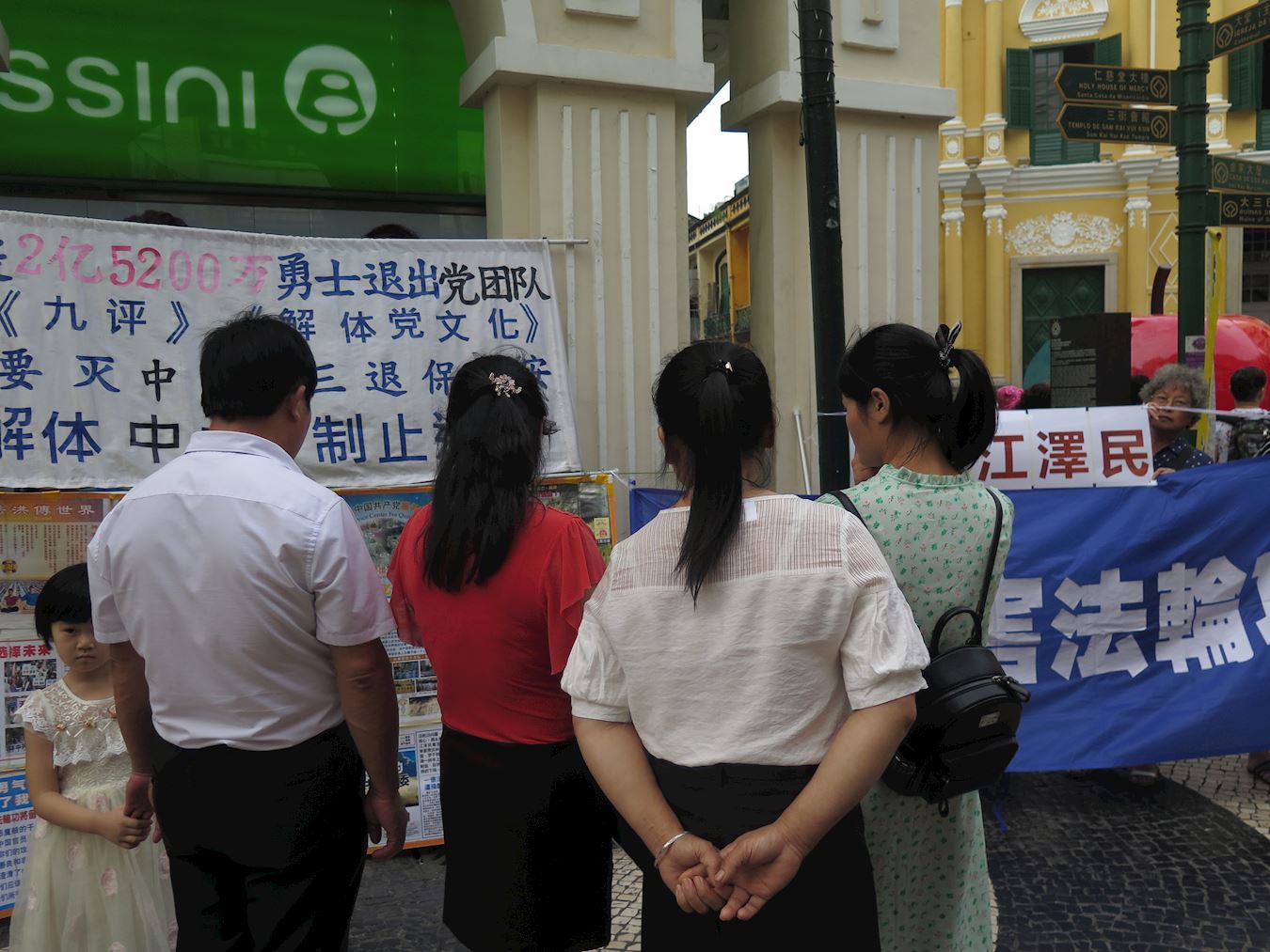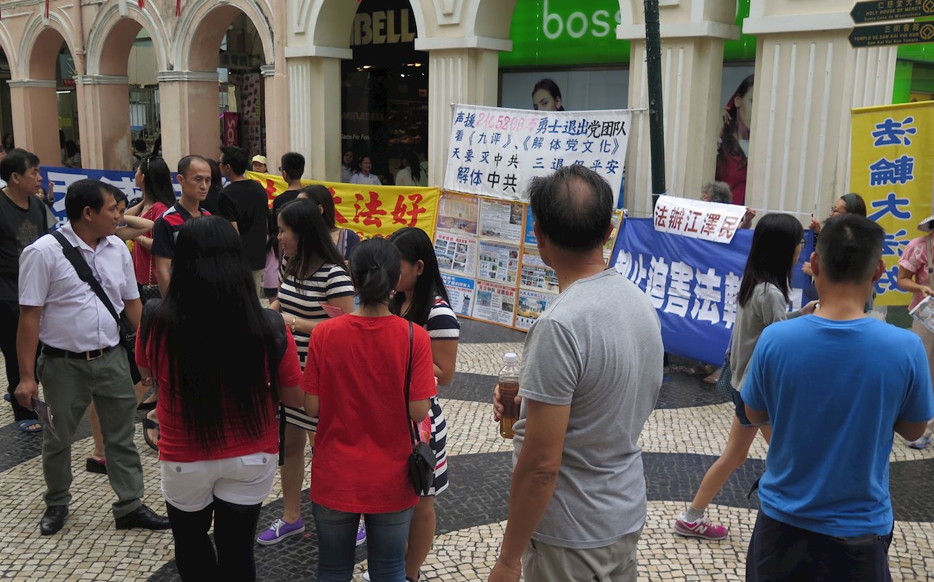 中国现任总理李克强于二零一六年十月十~十二日到访澳门,出席会议。澳门法轮功学员于九日下午集会,要求“停止迫害法轮功”及”法办江泽民”,得到澳门市民的认同。大陆游客也纷纷停下脚步,仔细观看横幅及图片,了解在大陆被封锁的真实信息。