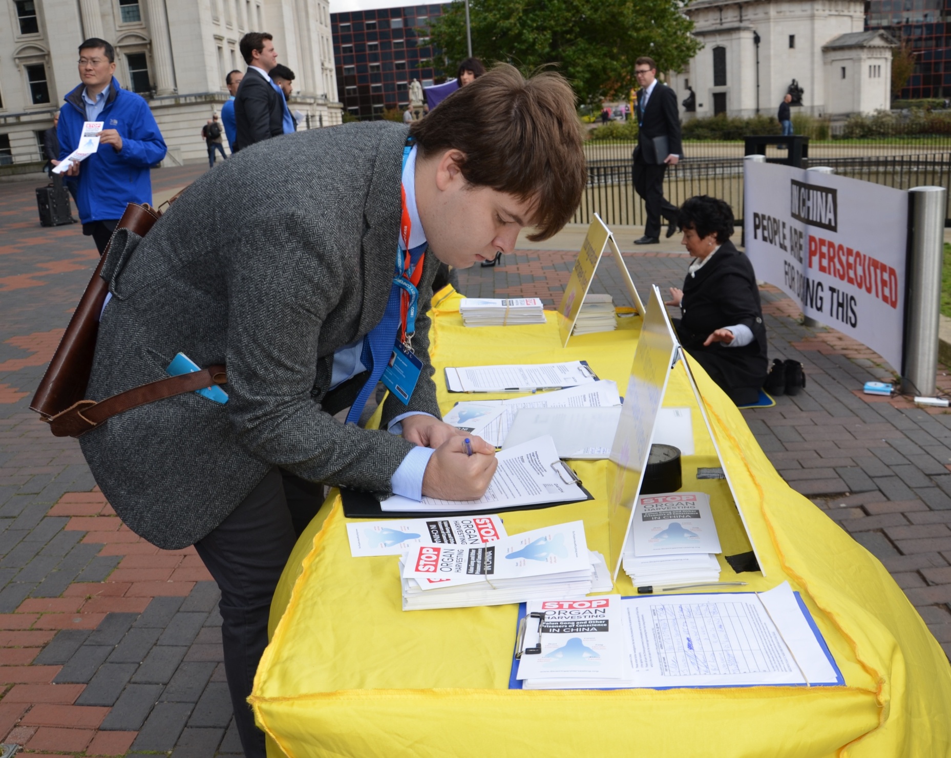 在英国出生的华人菲德拉(Phaedra)在伯明翰市政府工作。她在请愿书上签名后说,“活摘器官的行为恐怖、非人。无辜的人们不应该被谋杀。国际社会应该对此展开调查,禁止这样的罪行。”