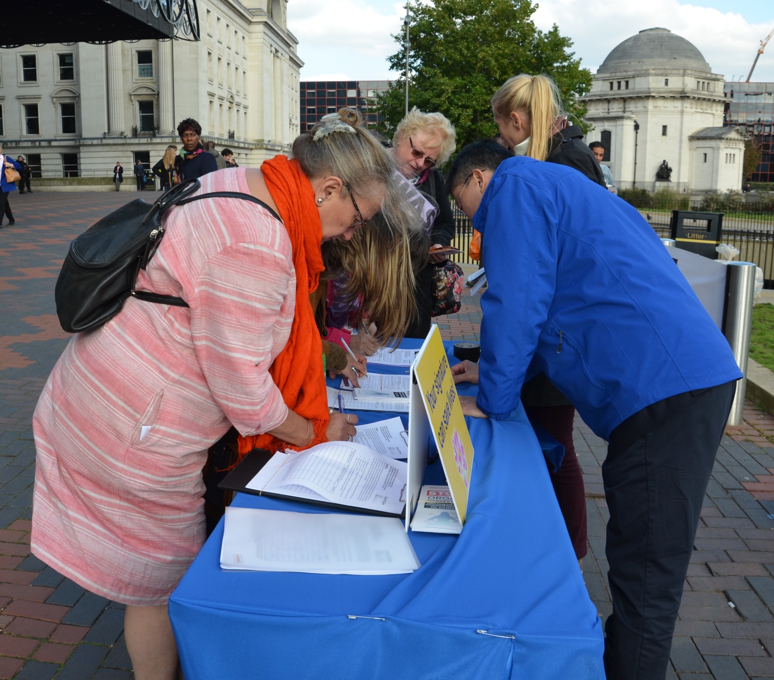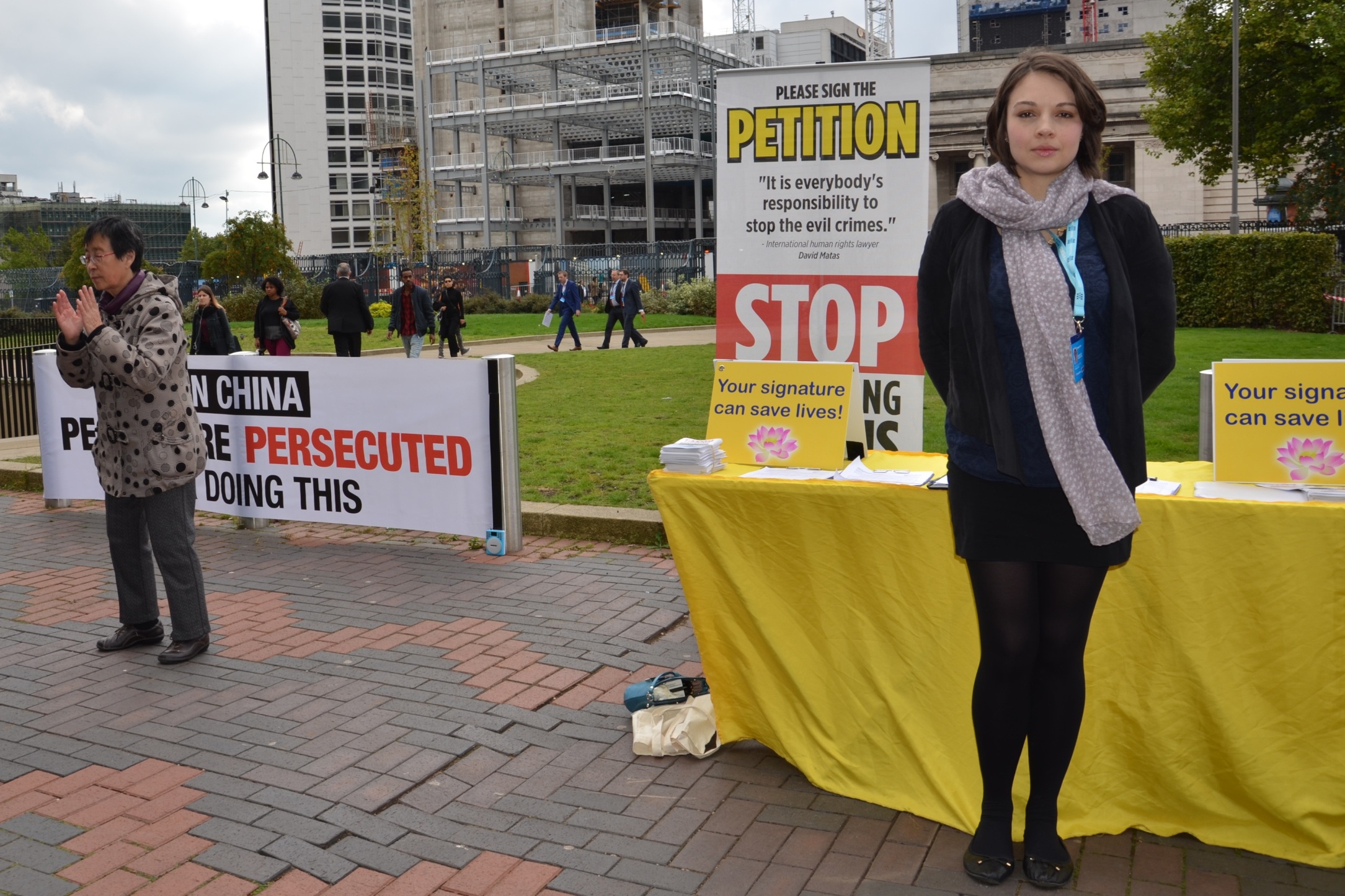 【明慧网二零一六年十月十一日】二零一六年十月三日至四日,英国执政党保守党于伯明翰国际会议中心召开党代会年会期间,英国的法轮功学员在会场外设立真相点,向参加年会的人士传播法轮功的真相、揭露中共活摘法轮功学员器官的罪行,并征集制止活摘的签名。许多与会人士经过时与学员交谈了解真相并在制止活摘请愿书上签名。