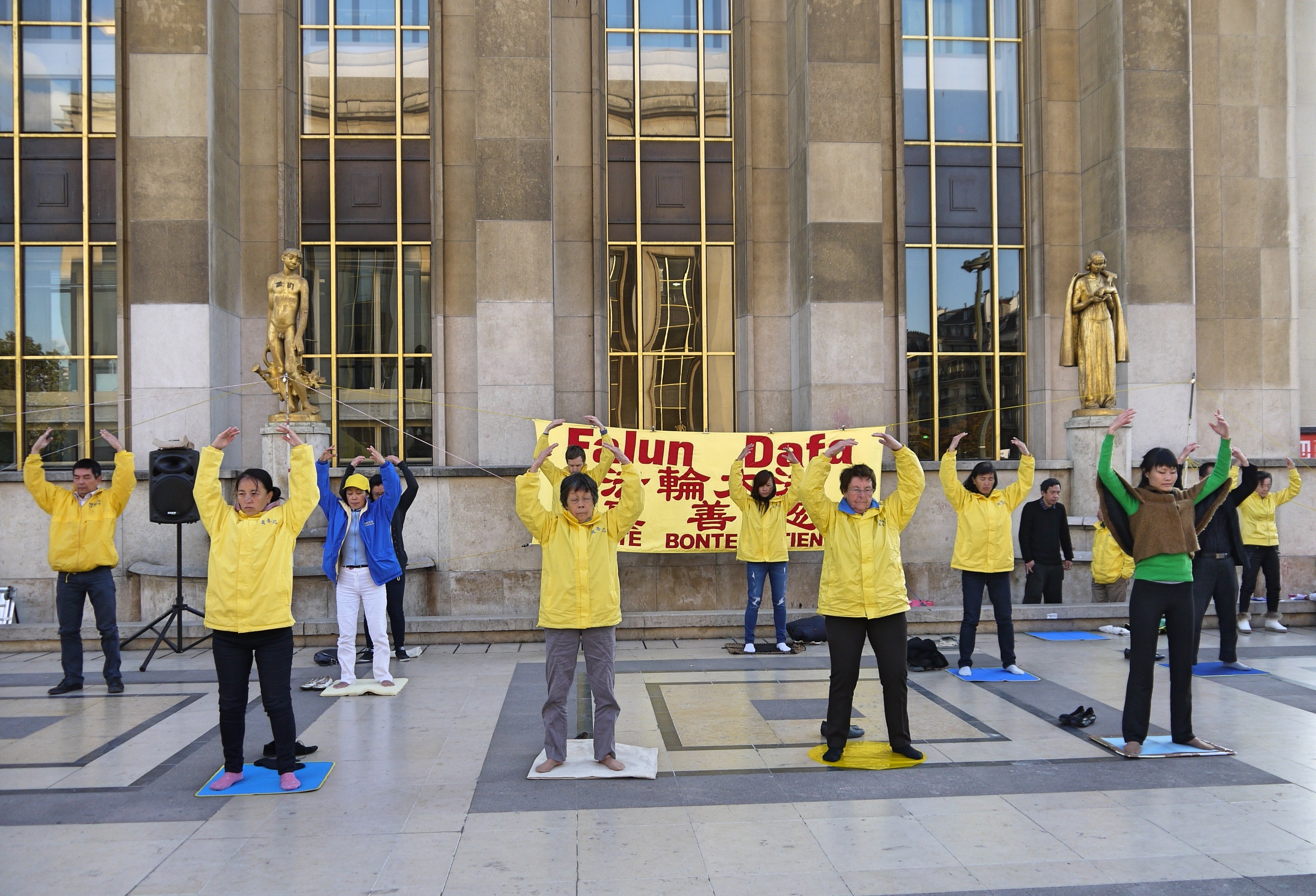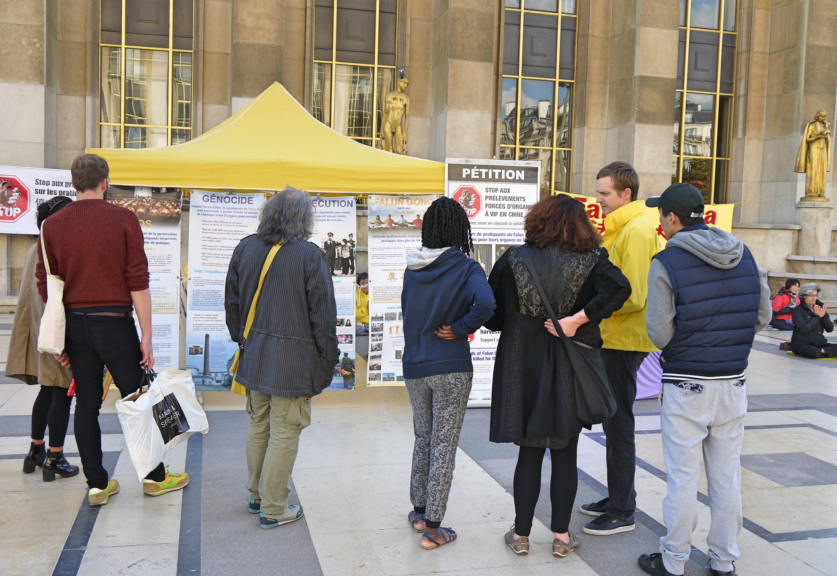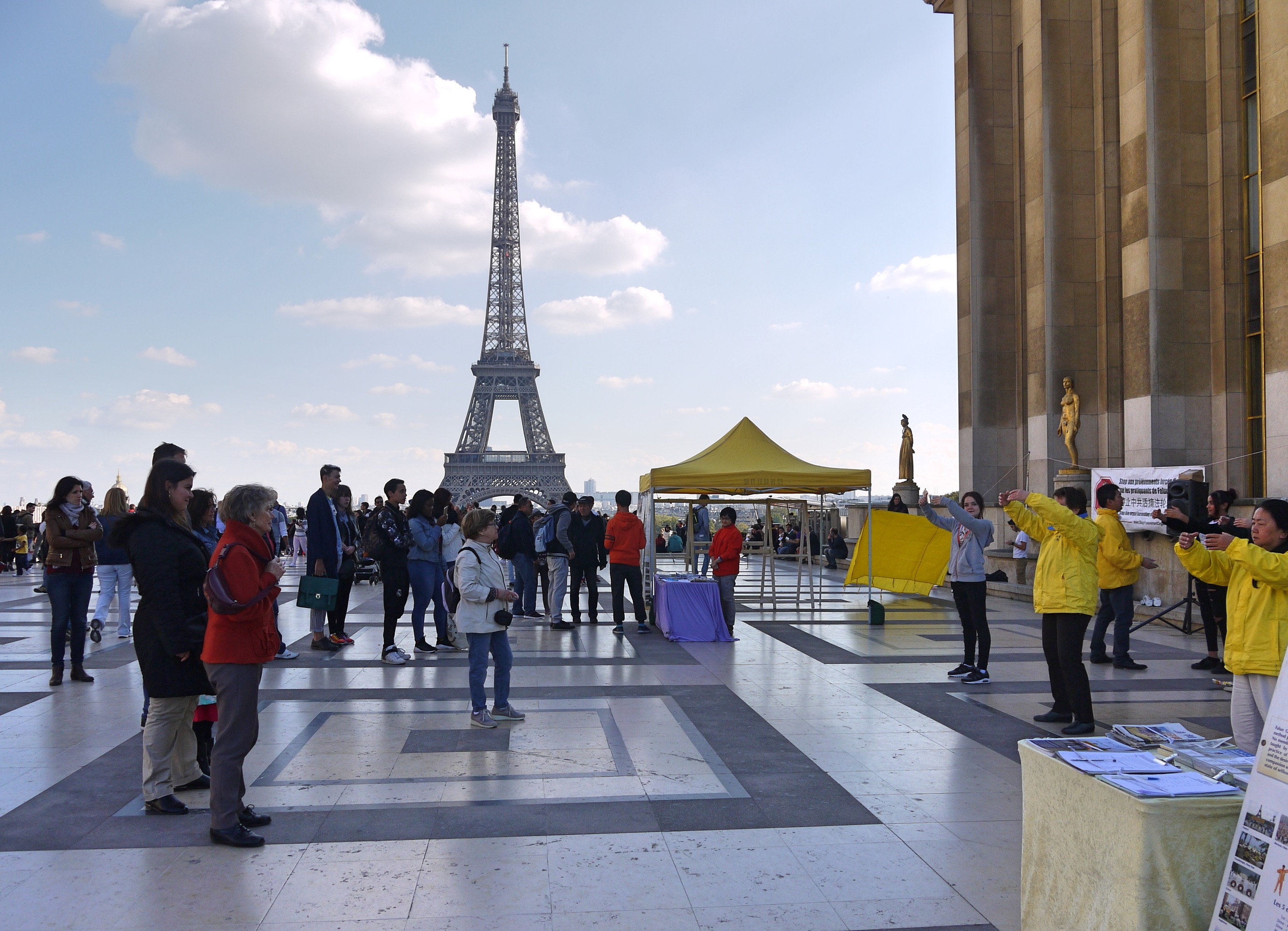 ![]() 图1:二零一六年十月九日下午,和往常的周日一样,法国的法轮功学员在巴黎人权广场传播法轮功的真相。 |