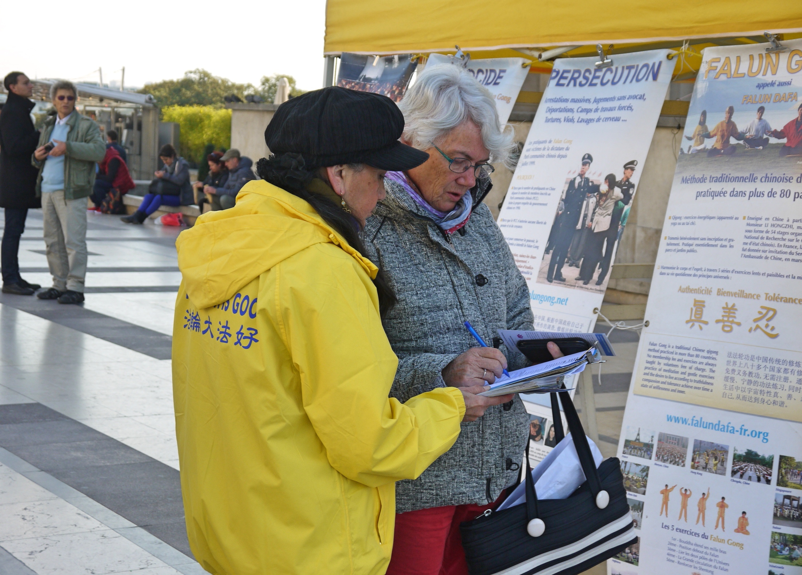 让·贝尔纳(Jean Bernard )是退休教师,他和太太及朋友都在征签表上签名后说: “我们是教师,无论如何,我们始终保持了人性和团结的精神。”“我们希望中国不要象从前的法国,有的国王被残忍地杀害。在全球化的今天,一个象中国这样有教化的国家,允许这样的事情(活摘器官)发生,对我们来说这完全是不正常的。”