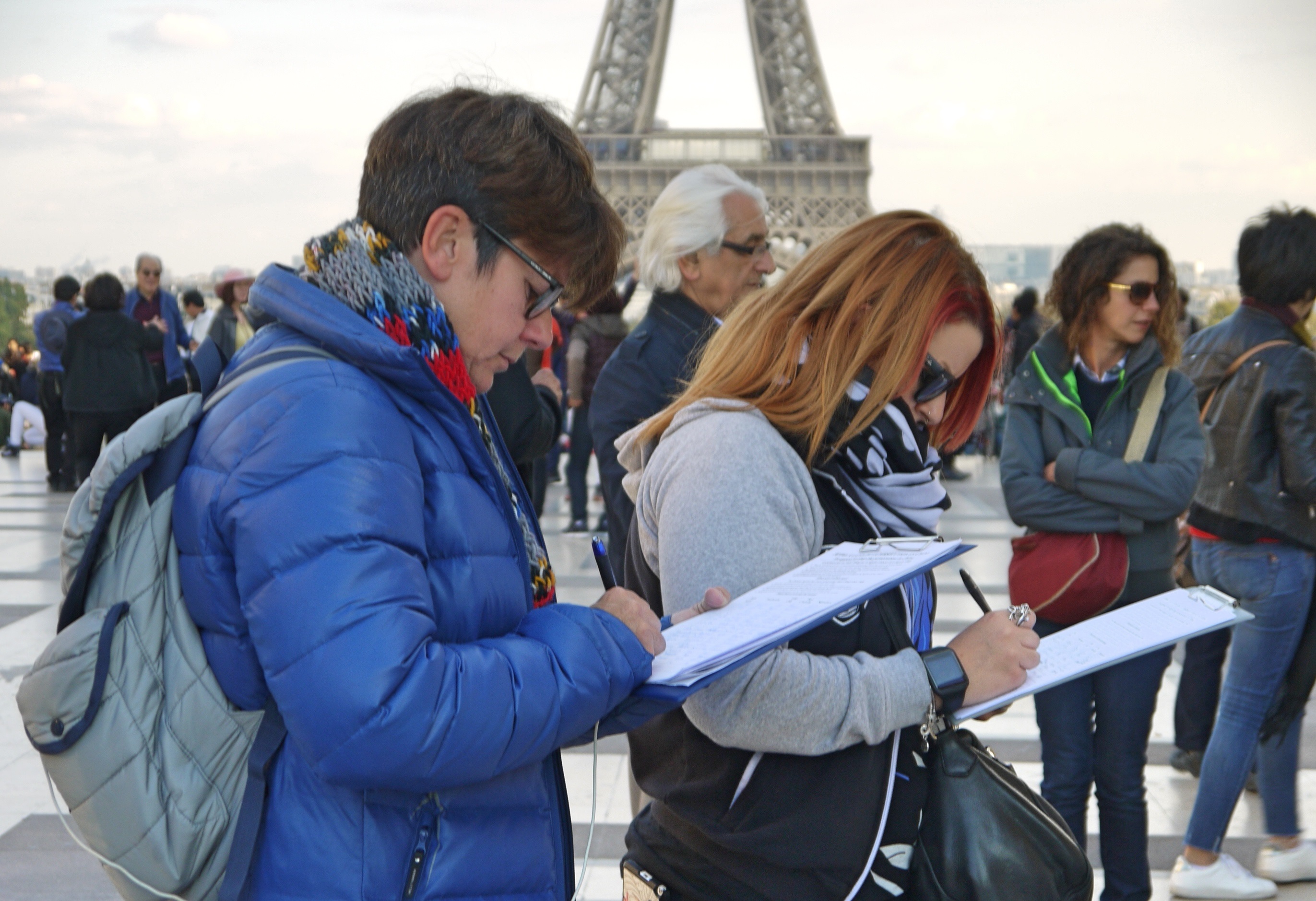 ![]() 图4-5:游人签字支持法轮功反迫害 |