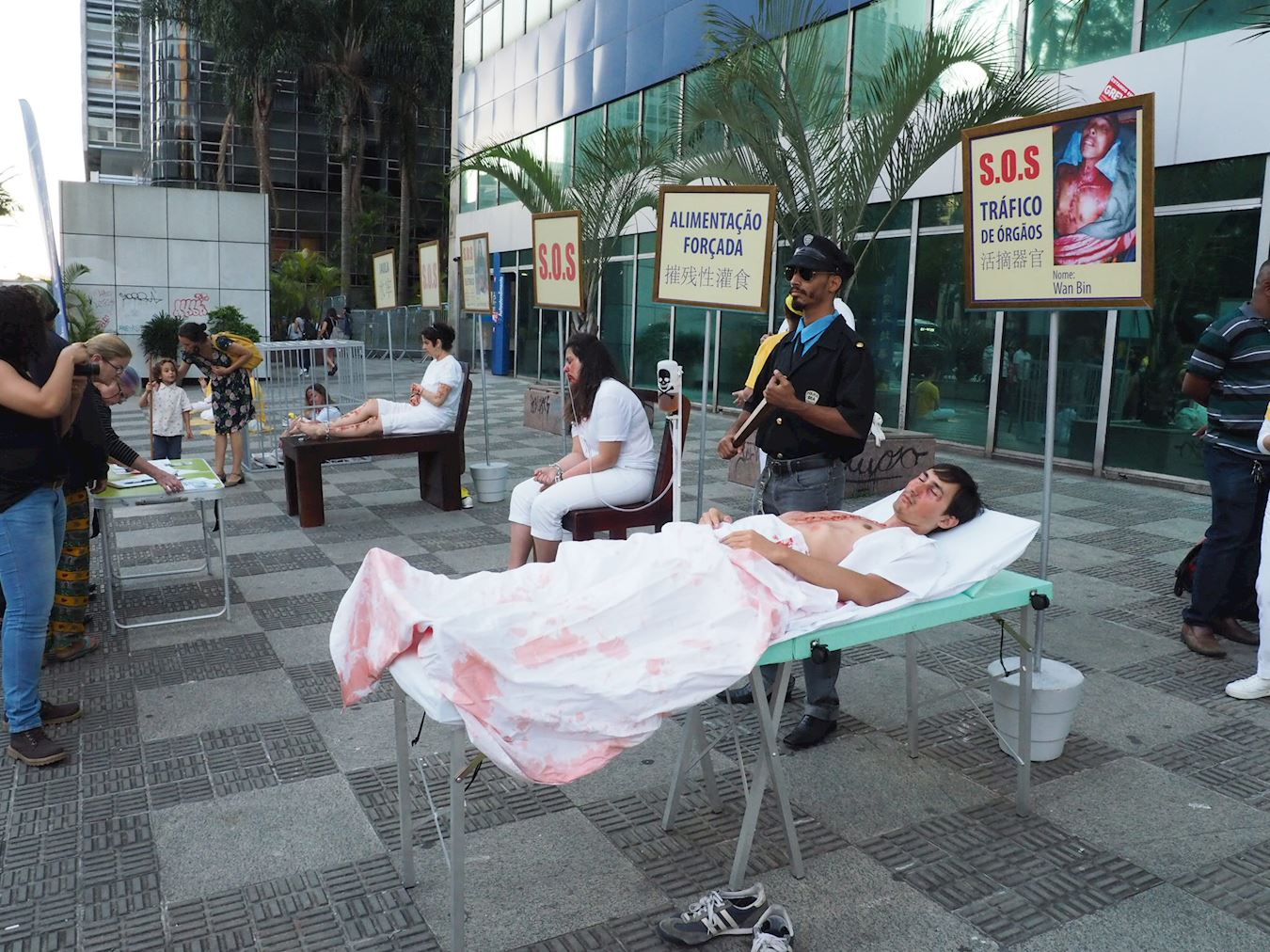 活动中,法轮功学员以真人演示揭露中共活摘法轮功学员器官盗卖的罪行,许多市人驻足而看,人们并纷纷签署递给联合国的DAFOH请愿书,要求立即停止在中国的强制活体摘取器官。