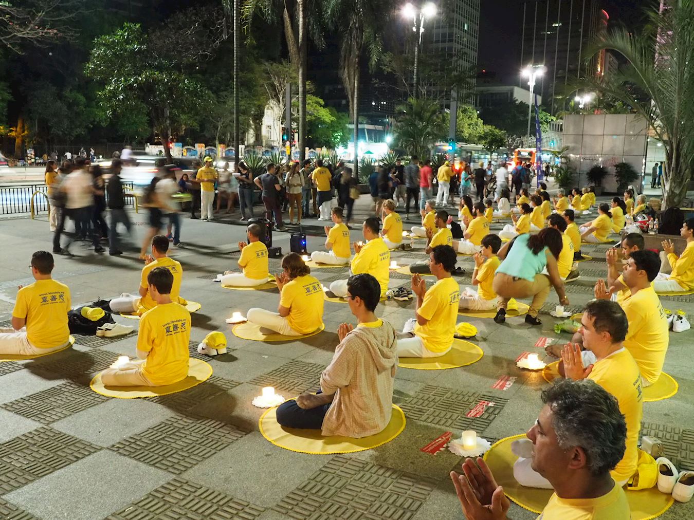 南美洲的学员一起在圣保罗最繁忙的地方游行、散发真相报纸和传单,经过有名的商业中心Paulista大街及东方区Liberdade 大街。