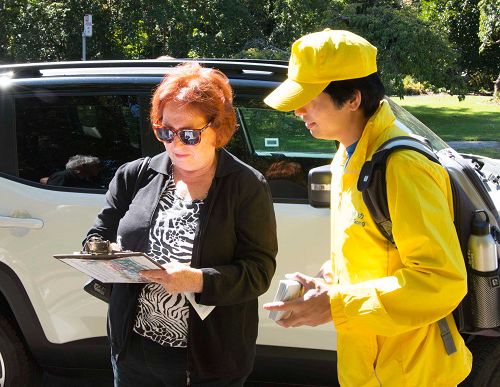 法轮功学员张玛丽说,征签的效果非常好,许多人主动过来了解情况。我们应该将征签继续下去,让更多的民众了解真相。