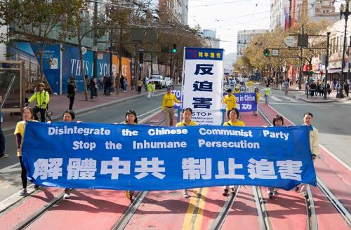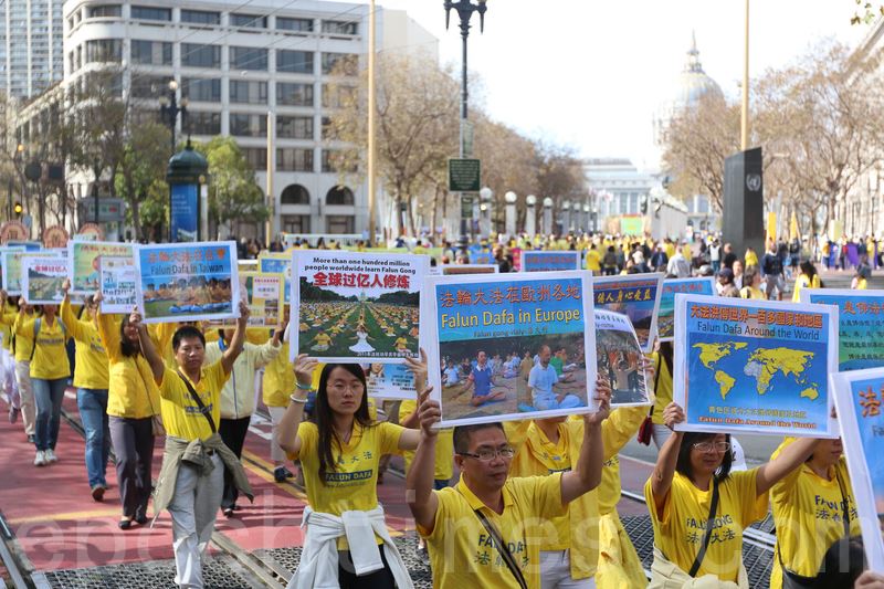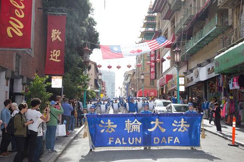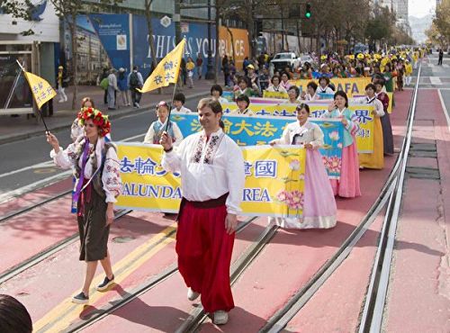 图1-9:二零一六年十月二十二日,来自世界各地的法轮功学员汇聚在旧金山举办的盛大游行,旧金山民众称:希望全美国的人都能看到这一幕。