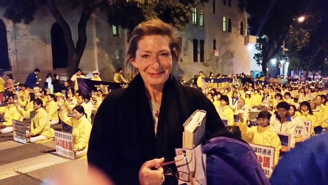 图3:为法轮功学员在中国遭受的非人迫害难过流泪、感同身受的当地居民斯莱斯特(Celeste)女士。