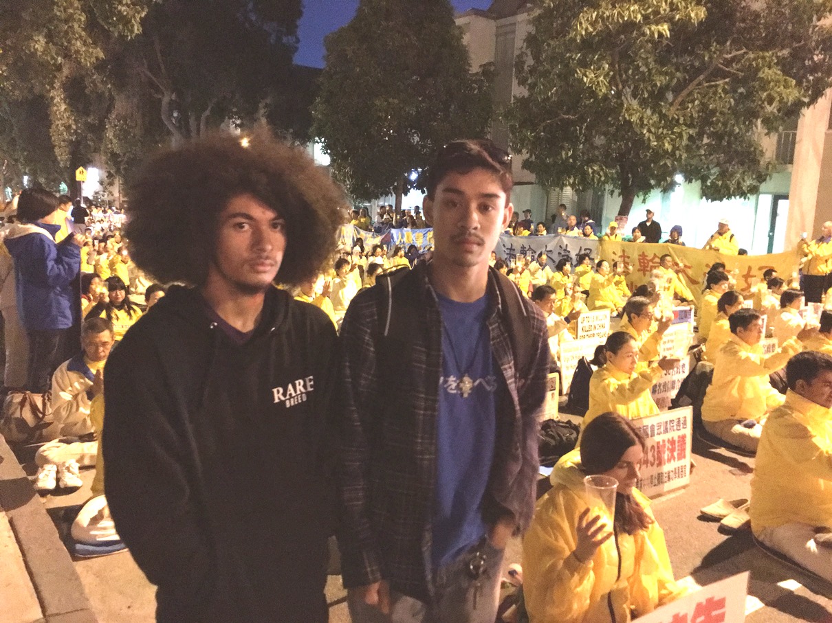 大学生马克斯(Paul Marquez)和同伴西顿(Kcameron Seaton)都是第一次听说法轮功,在了解了基本真相后,他说:“第一次听说中共活摘法轮功学员的器官,牟取暴利,太令人震惊了,难以置信!”