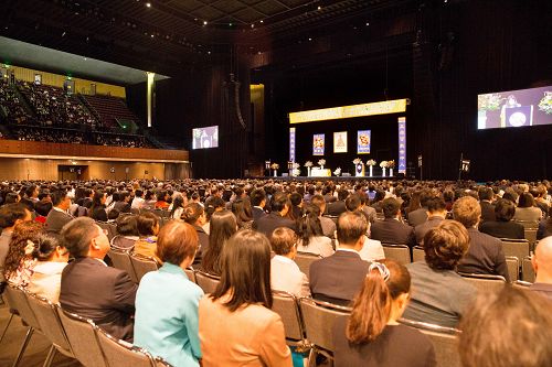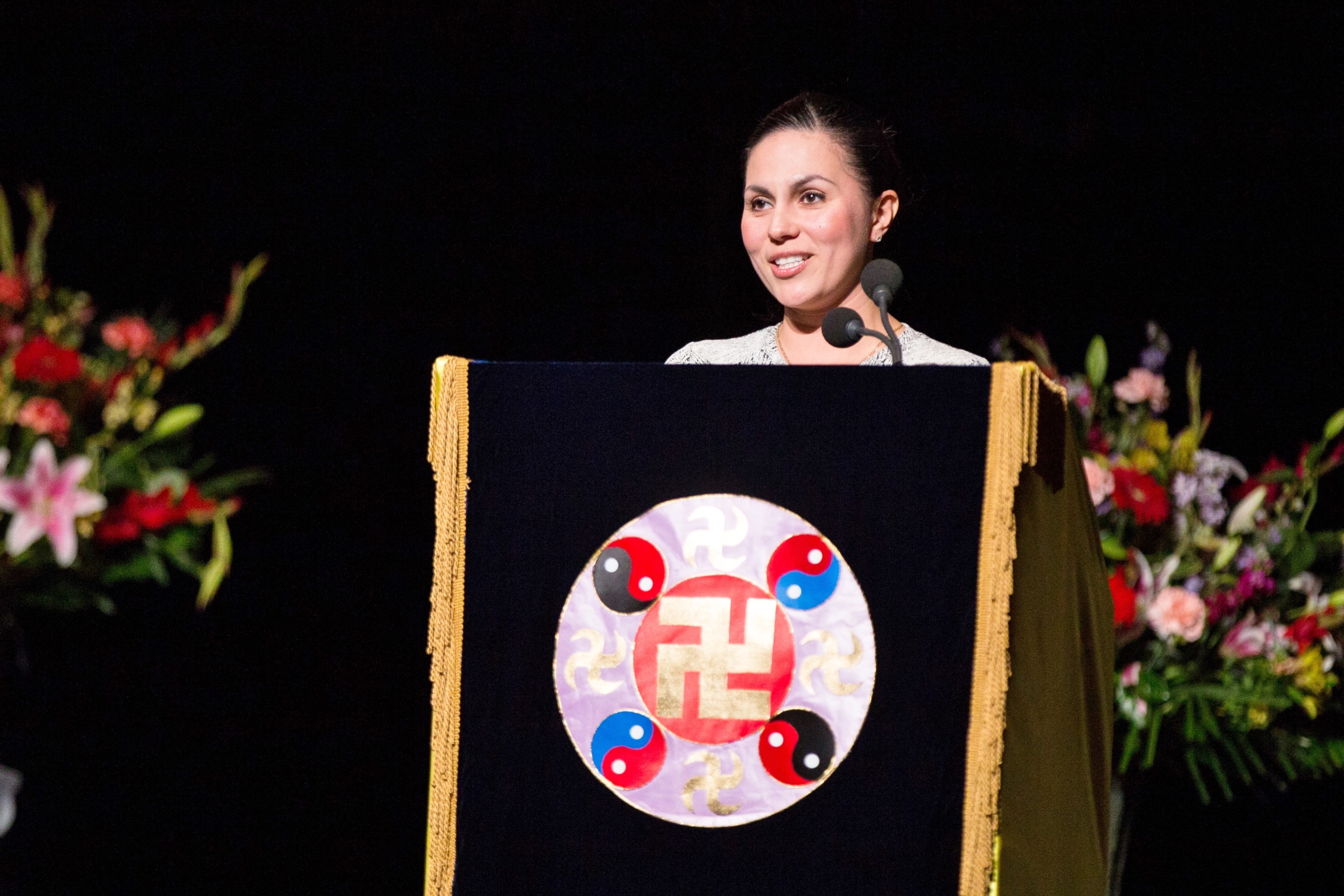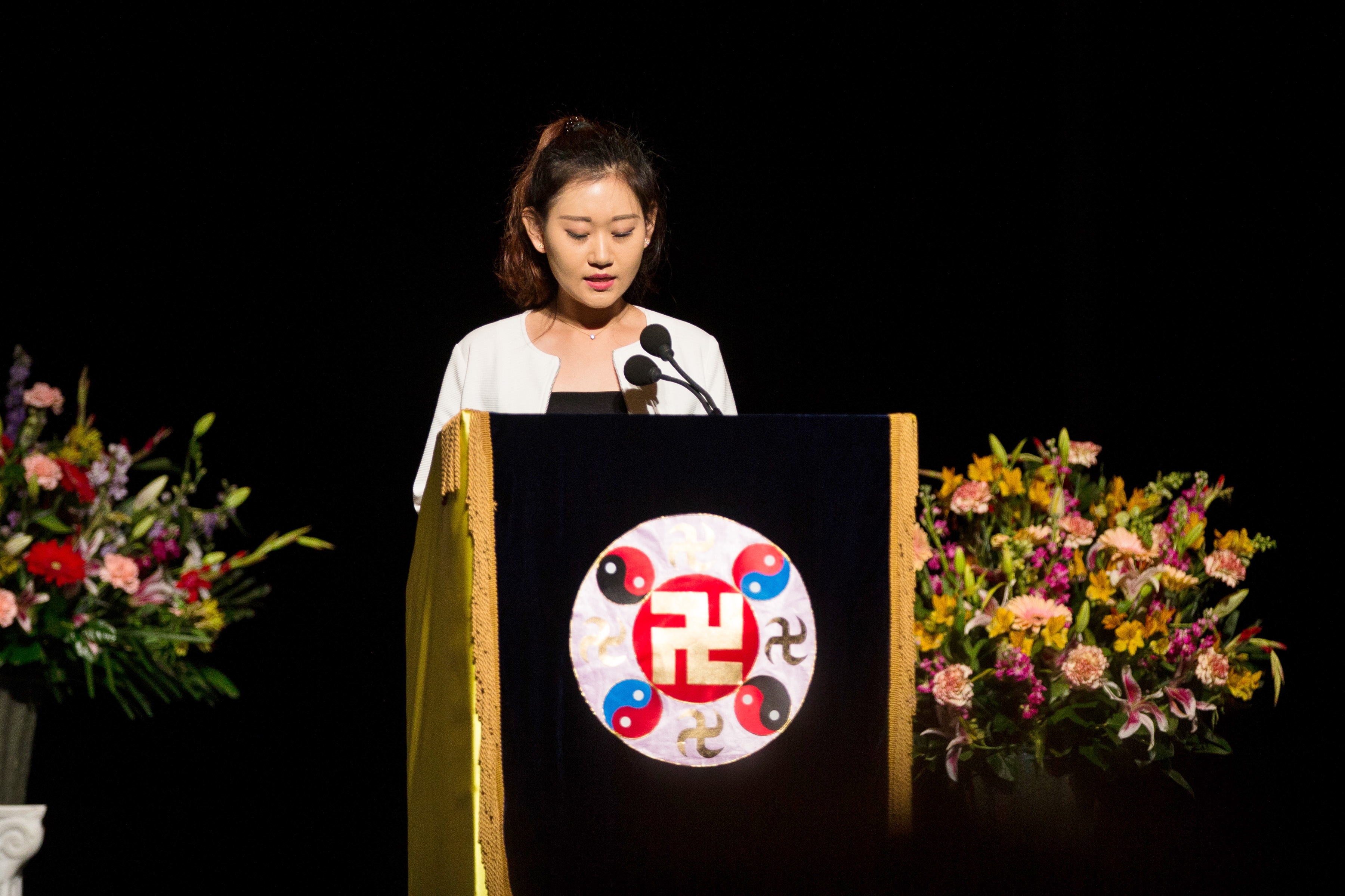 十七位中西方法轮功学员上台分享了他们按照真、善、忍的原则修炼身心受益的经历;以及在向内找修好自己的同时、坚持不懈地向社会各界讲述中共迫害法轮功、迫害世人的真相。