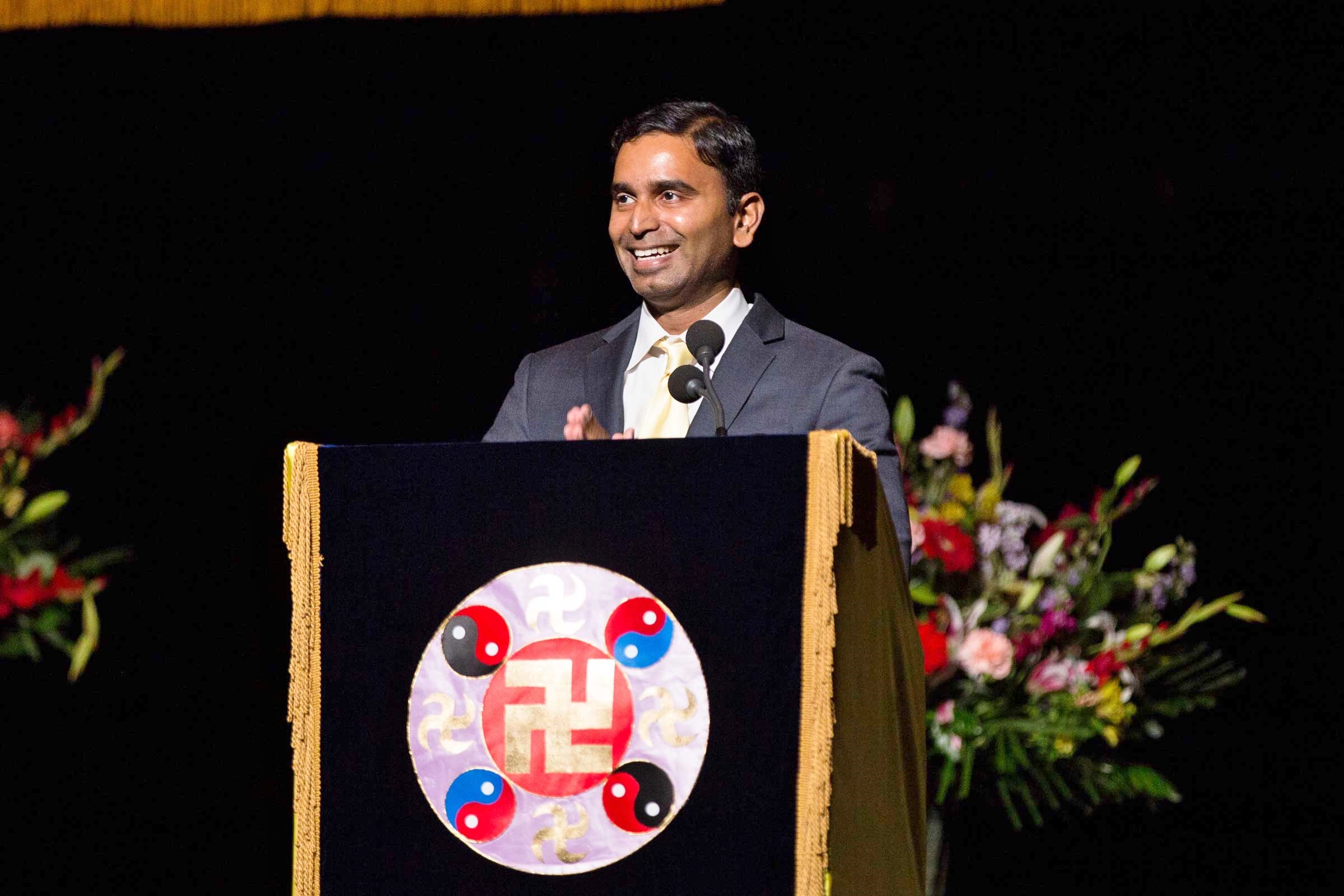 美西时间下午4:45分左右,法会主办方宣布法轮功创始人李洪志先生发来的问候,及祝法会成功。