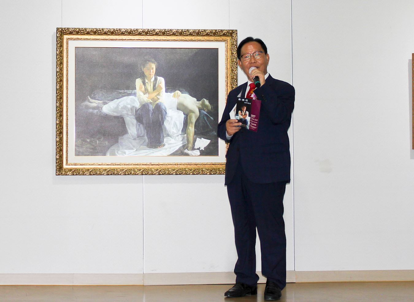 ![]() 图4:国立昌原大学美术专业名誉教授黄元喆在开幕式上表示:“‘真、善、忍’是我们应该共同守护的普世价值”。 |