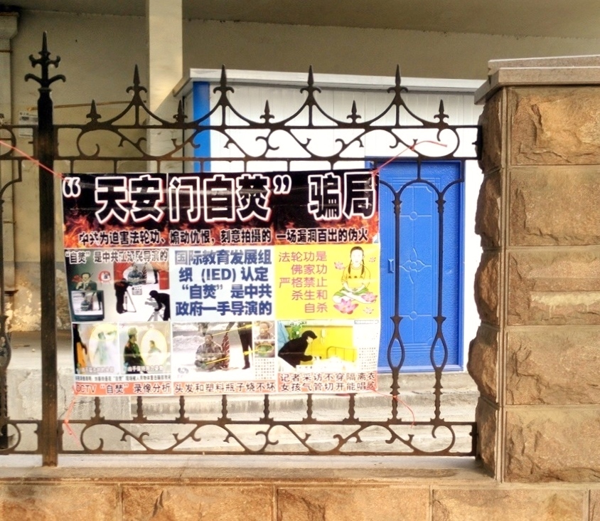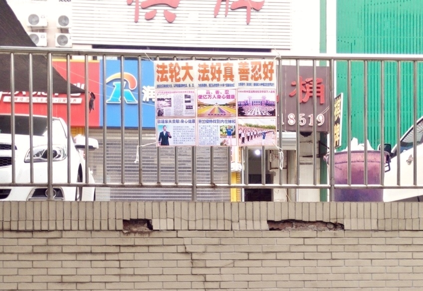 2016年七二零前后,在济南地区的大街小巷和居民居住区,多处可以看到图文并茂的展板,展示法轮大法在世界的洪传,揭露中共自编自导的“天安门自焚”骗局,见证中共对法轮功学员的残酷迫害,介绍善恶有报的案例等。