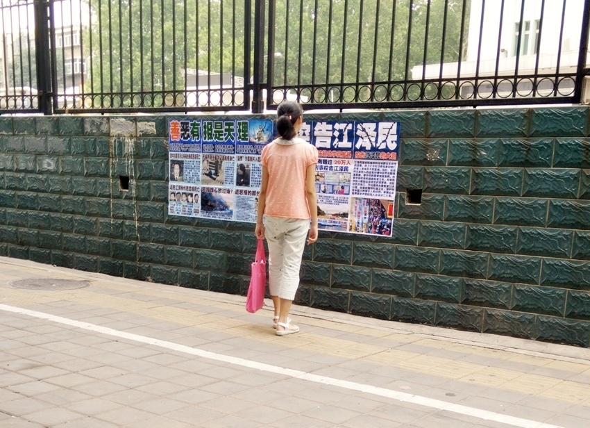 • 河北沧州某县的诉江展板吸引学生观看