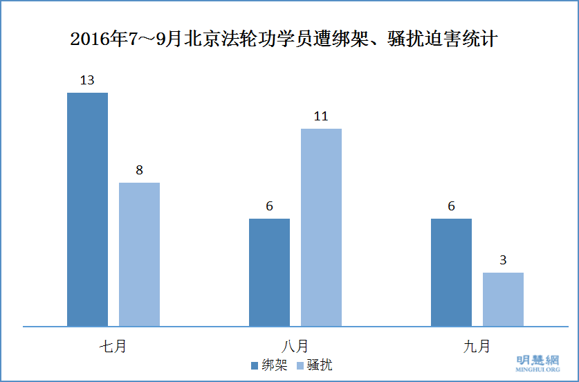 ![]() 2016年7~9月北京法轮功学员遭绑架、骚扰迫害统计 |
