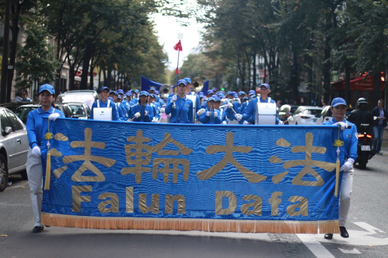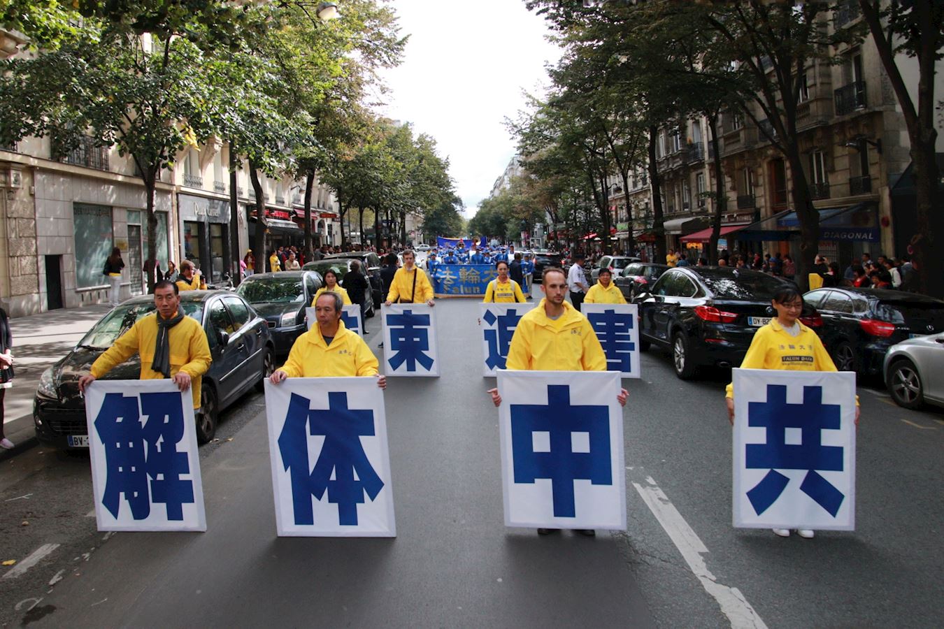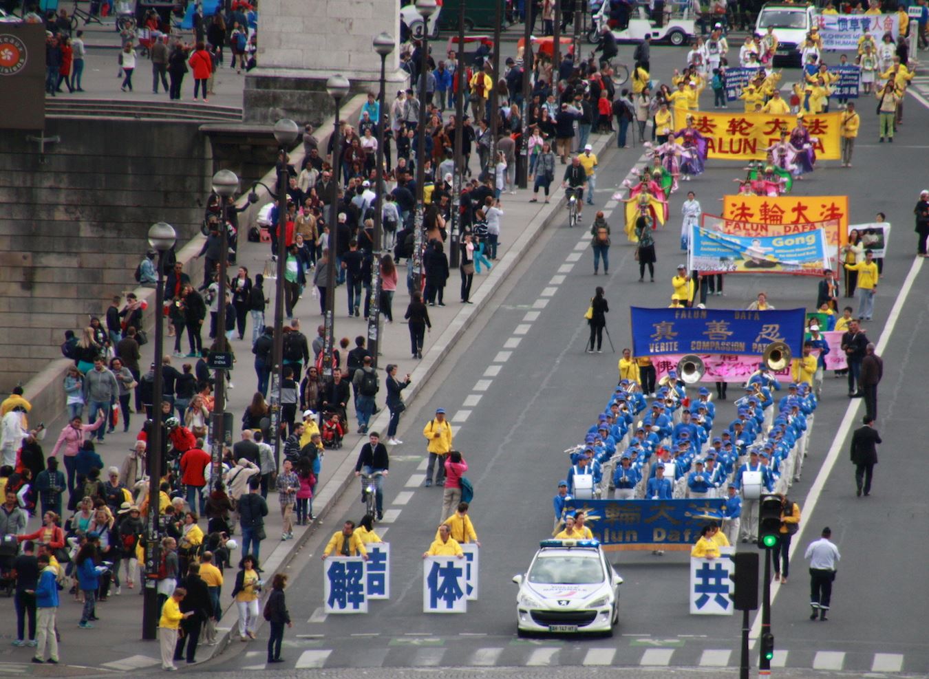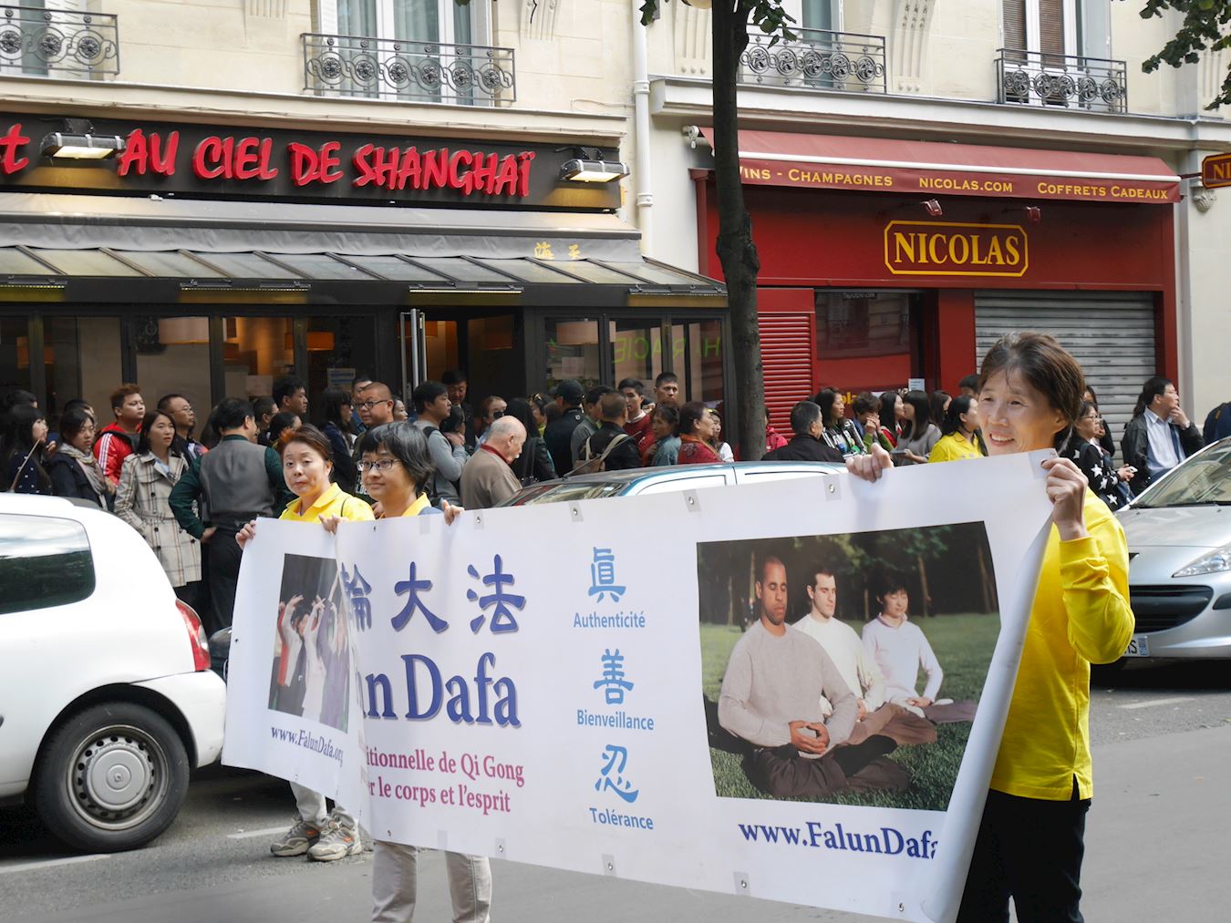 法轮功学员巴黎游行 中西民众明真相(图) 【明慧网】