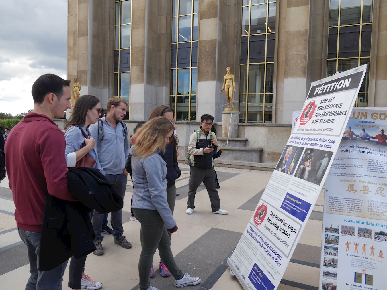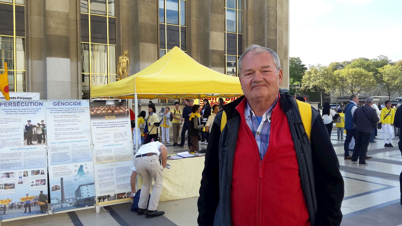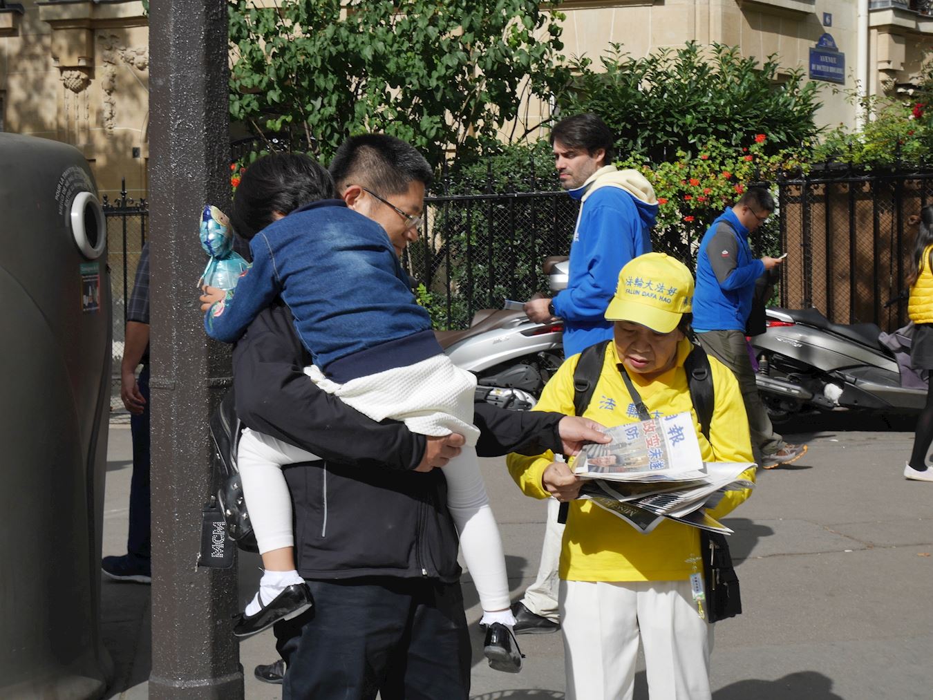 游客蔡先生表示:“我很震惊,法轮功传播不只是在美国那面,在欧洲尤其在法国,法国是讲自由平等的先进民主国家,看到法轮功在这里,我也是很欣慰。”