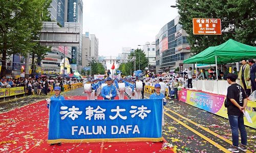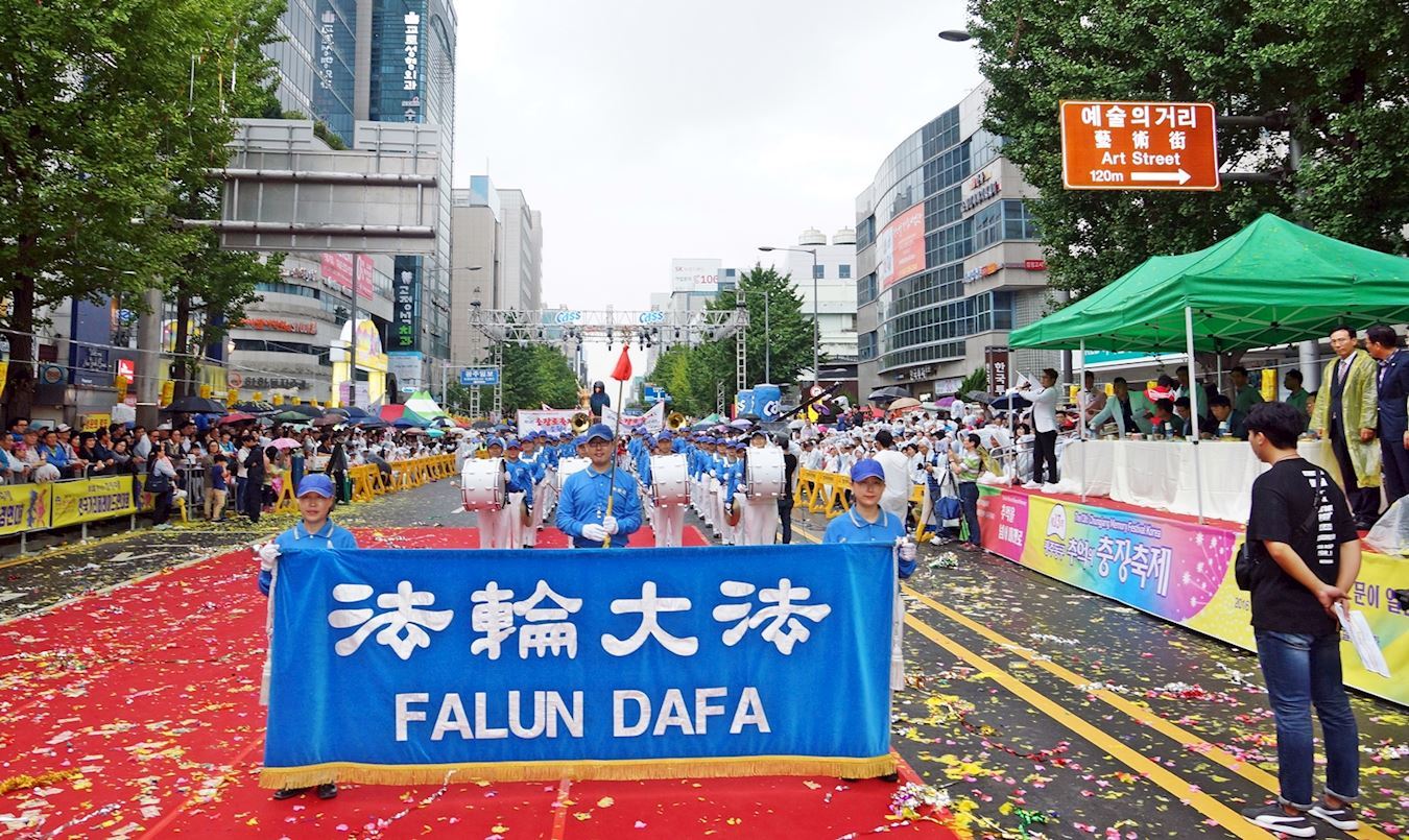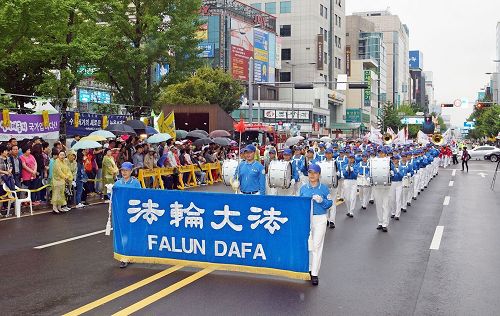 庆典举办的五天期间正赶上绵绵细雨,但街道两边依然被观众挤满。庆典主办方贴心地为参加游行的每一位参与者准备了雨衣,但天国乐团的团员们却没一人动,礼貌地将雨衣贴身放置,依然冒雨前行。清爽的蓝白色服装成为当日蒙蒙细雨中的一道亮丽风景线,在约一小时三十分的游行中天国乐团赢得了无数掌声与赞叹。