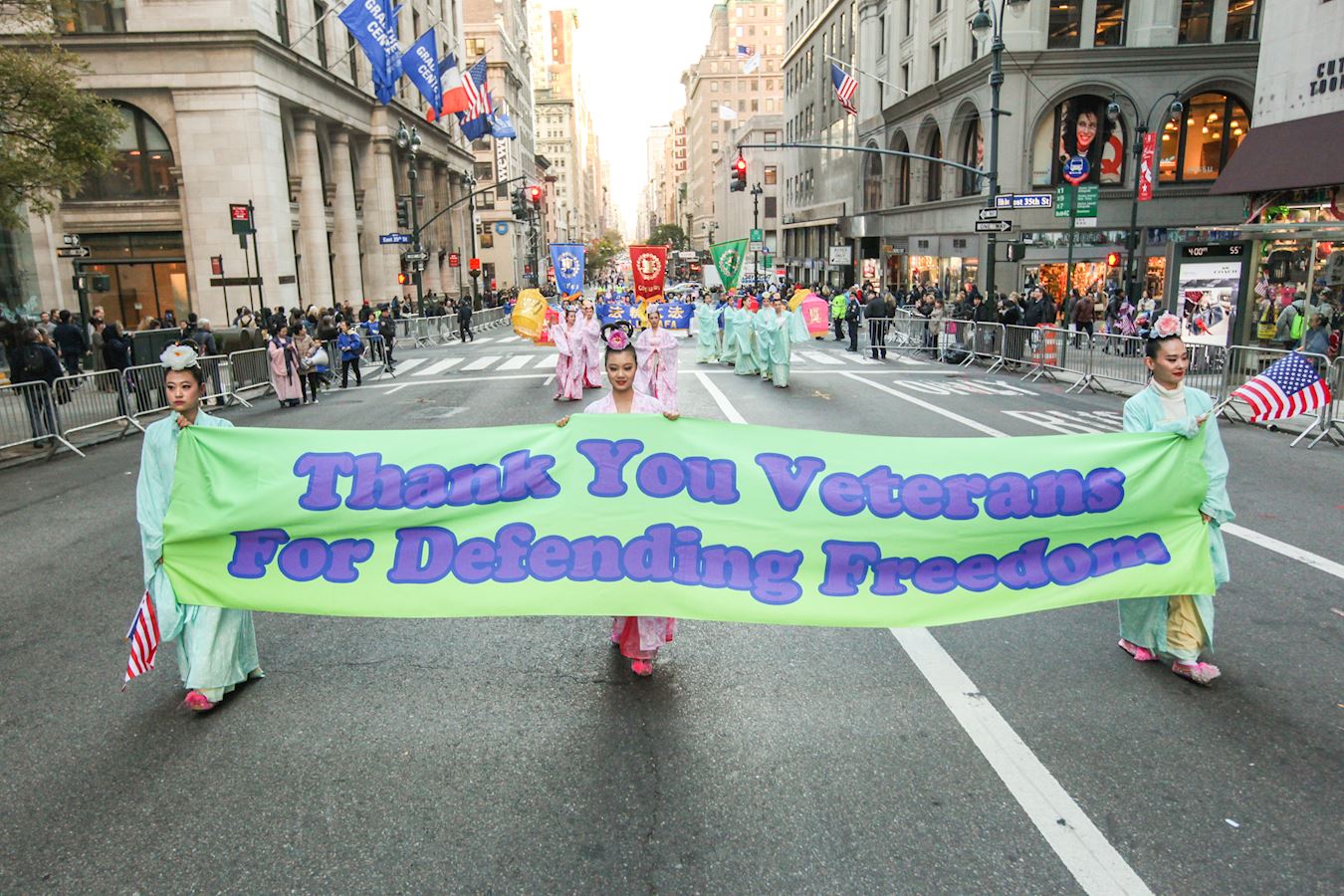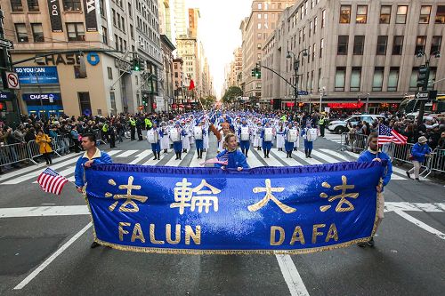 活动组织者易蓉介绍说:“这次我们有三百多人参加了这个游行。我们非常高兴把天国乐团、旗阵和鼓阵展示出来,给老兵节增添风采。同时也把法轮大法的美好带给曼哈顿各族裔人们。”她说,美国老兵服务局每年都邀请法轮功学员参加游行,“一方面因为我们的队伍漂亮、壮观,带给人们正的能量;另一方面也说明主办方很认同我们真、善、忍的价值,支持我们对信仰的追求。”