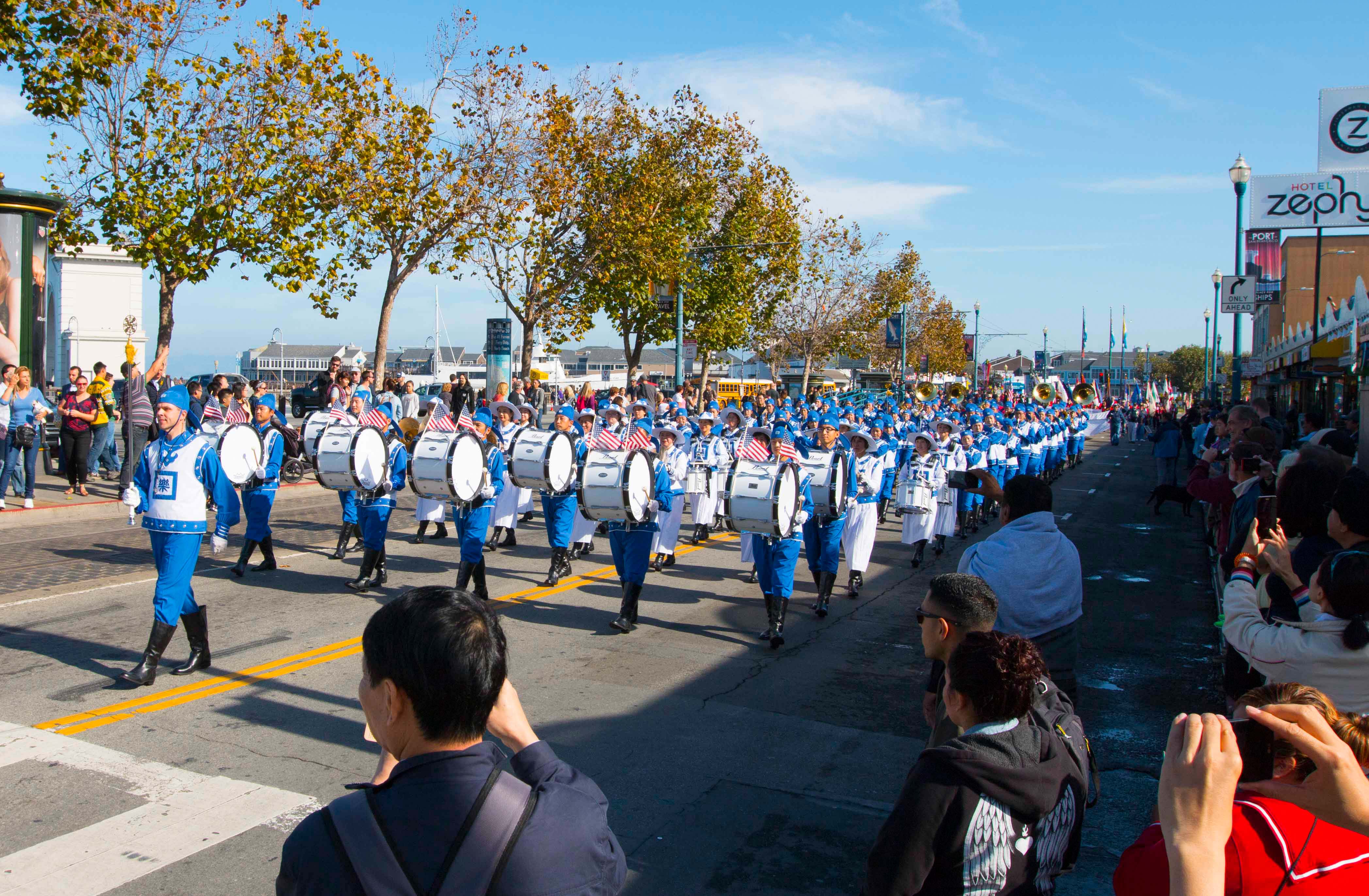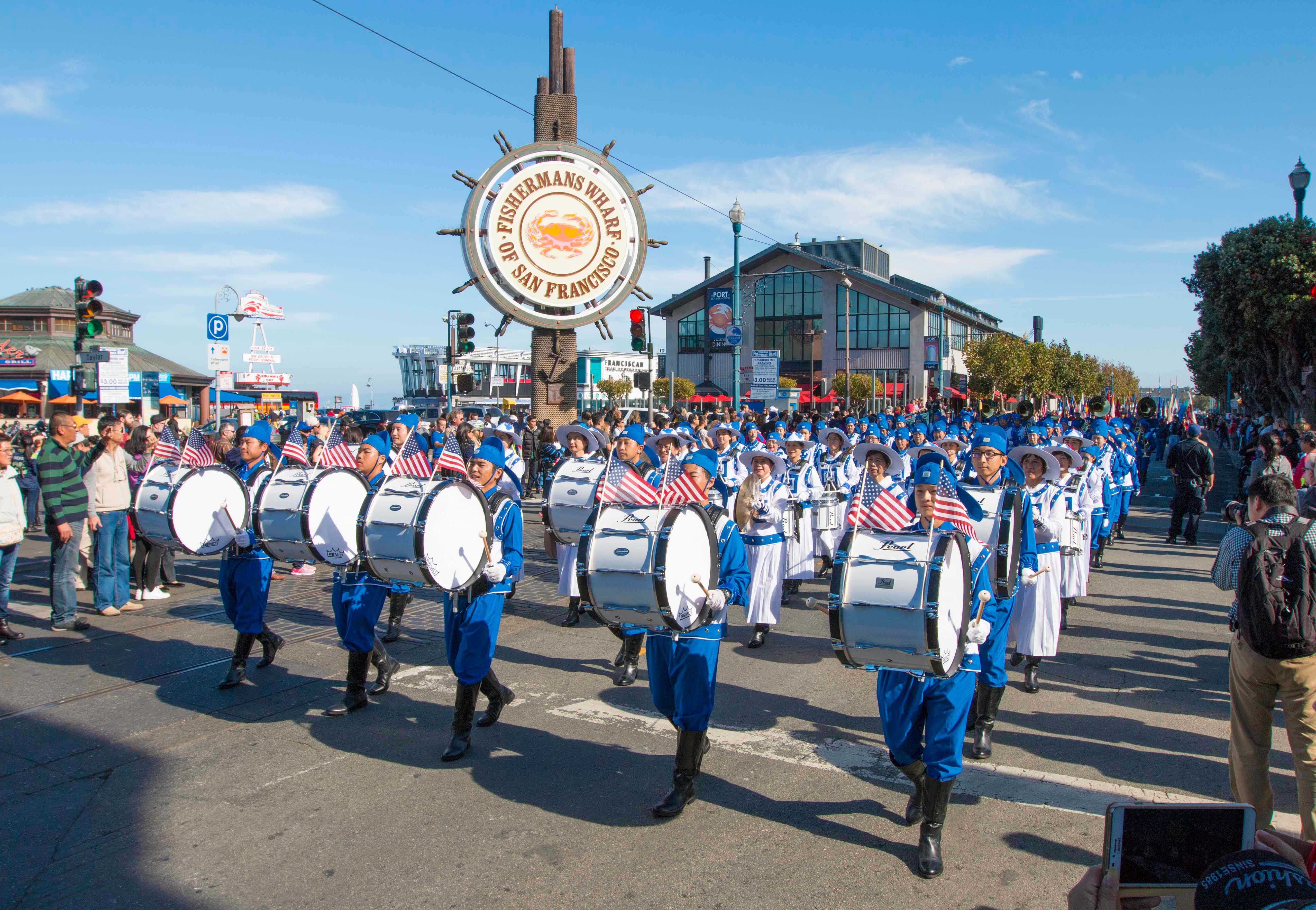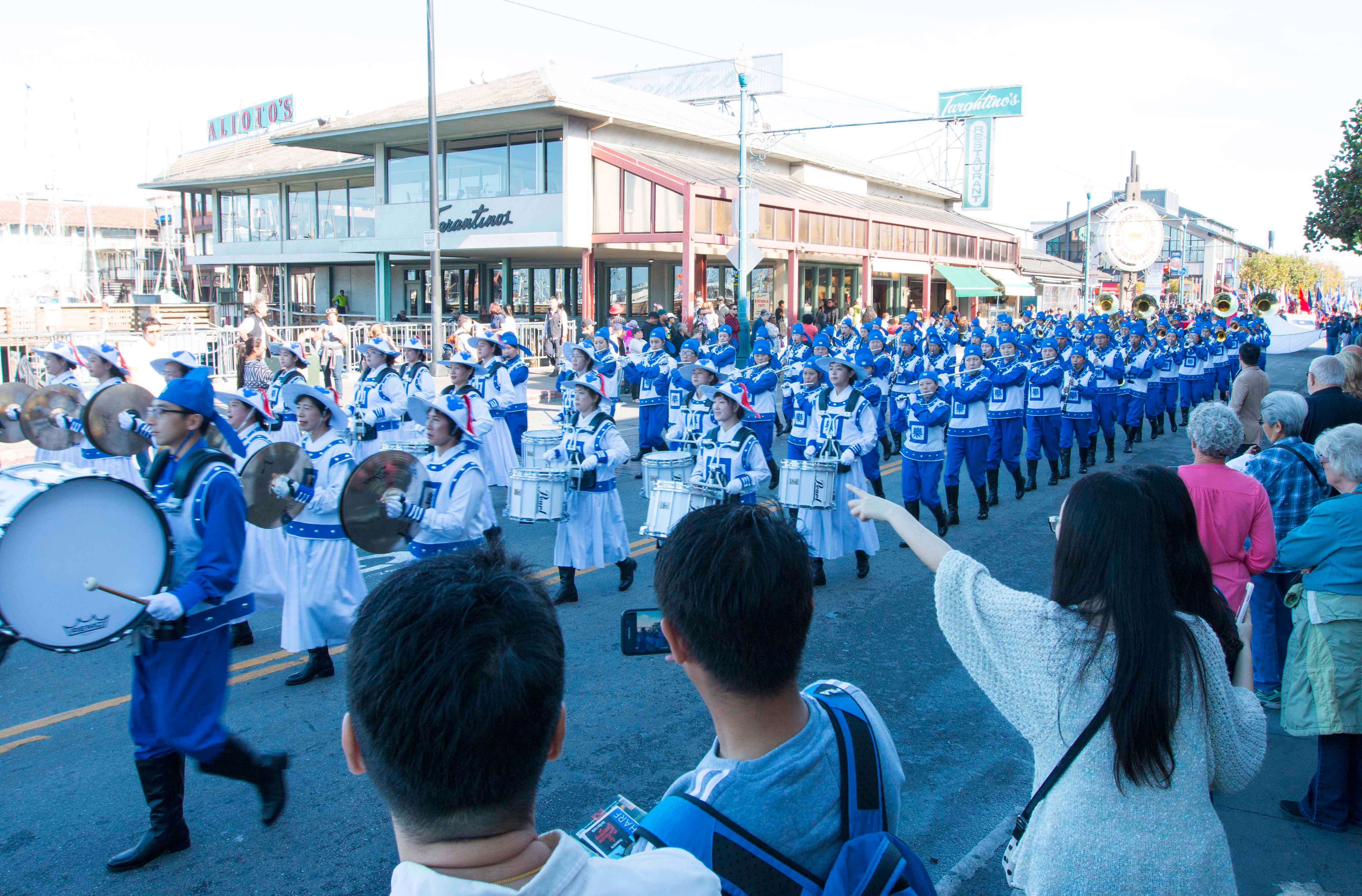 ![]() 天国乐团的队伍经过旧金山著名旅游景点渔人码头 |