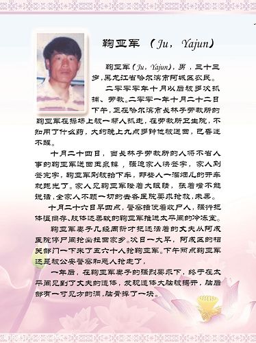 在这种精神与物质的双重压力下,王娟很忧郁,最后积劳成疾,二零一二年元月被查出肝癌晚期,于二月八日含冤离世。