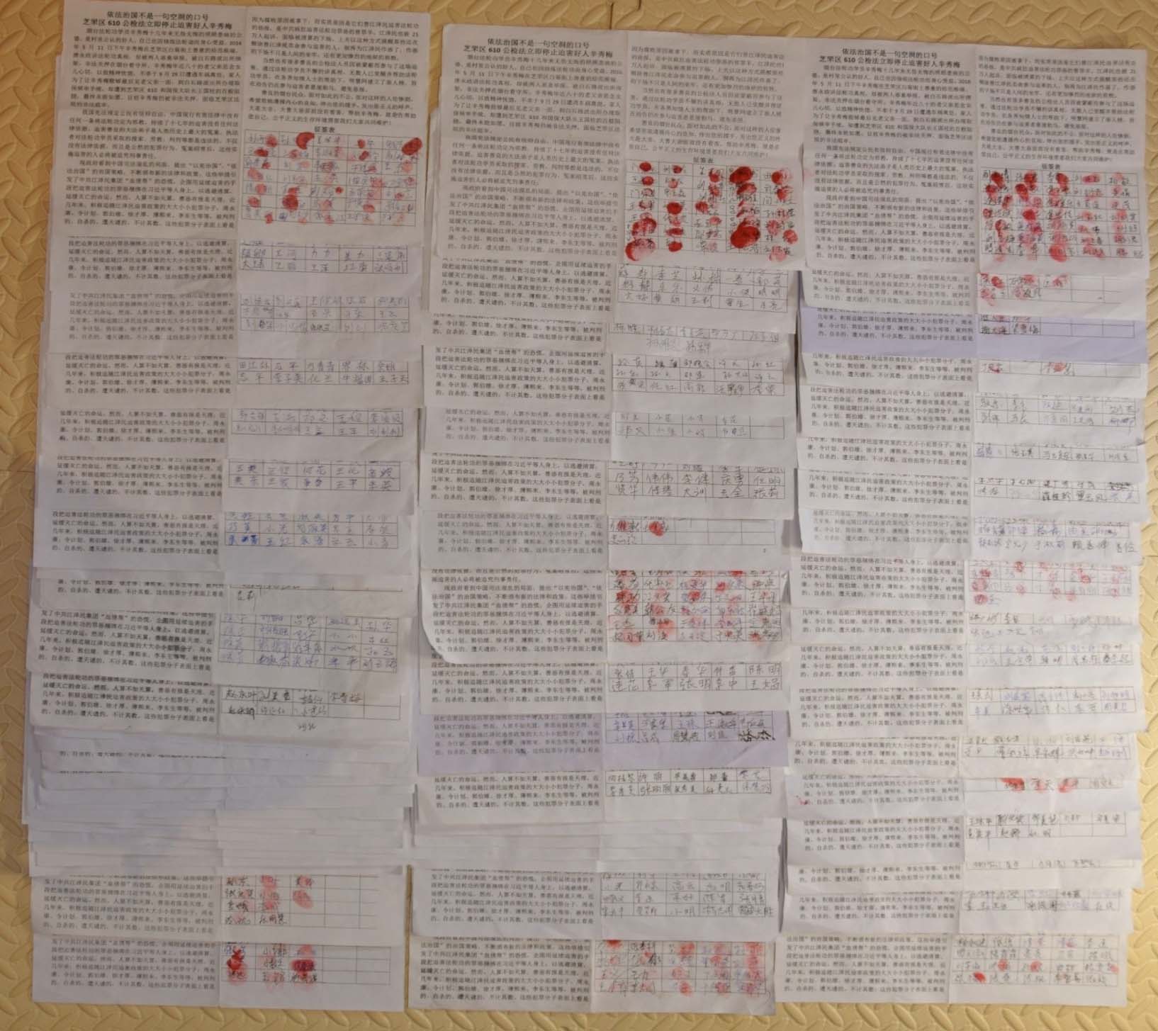 辛秀梅被迫害的冤案在烟台市民中得到广泛的关注,从得知案卷送达法院,到开庭,短短十几天的时间,烟台就有至少一千五百四十六人签名或按手印声援无罪释放辛秀梅。