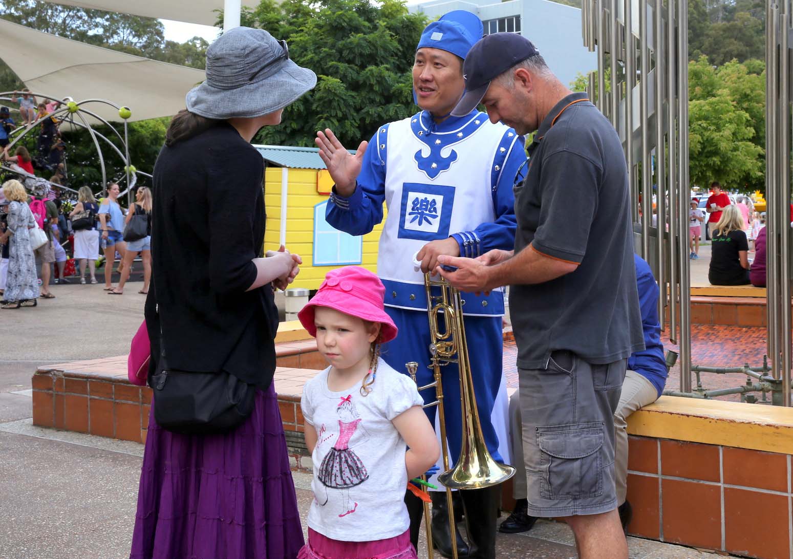 另有一位老先生也问高先生:“你们的演奏太好了,你们是什么乐团?”高先生告诉他,我们是法轮大法天国乐团。并告诉他,法轮大法是一种性命双修的功法。老先生听了马上叫他的太太也过来听。高先生给他们解释了法轮大法的修炼方法和修炼原则。他们听了很高兴,并对高先生说:“欢迎你们也来参加中央海岸地区的庆祝活动。”