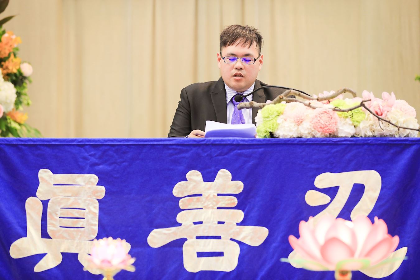 来自台北的青年学子王玮志,分享自己放下电动游戏的修炼体悟。他谈到,自己加入媒体工作后,由于工作量大,又遇到感情的考验,学法炼功逐渐减少,为了纾解一下就碰了游戏,结果越玩越沉迷,还看小说和连续剧。就在他消沉、大量荒废宝贵的修炼时间之时,在一次大组交流中,他跟学员学法炼功、找回了修炼如初的感觉,悟到自己的空间场已被电动污染得乱七八糟,他明白后立即把所有游戏全部删除,此后他坚持每天出去炼功,把握所有休息时间学法、抄法。王玮志并交流到,就在他放下对游戏的执着后,一天学法前突然看到四个大字“迎头赶上”,他眼泪掉了下来,心中对师父的感谢无以言表。