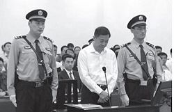 ●周永康,以迫害法轮功学员凶残毒辣获得江泽民信任,2007年被江泽民塞进中央政治局常委会,成为迫害法轮功的总操盘手。周永康恶报入狱,其妻贾晓烨,家族周滨、周元青,其前秘书和旧部李春城、郭永祥、李崇禧、李华林、蒋洁敏、冀文林、余刚等,“满门被抄”。恶贯满盈的周永康,在法庭上低下了他那罪恶的头颅。上图:面对审判,周永康说:“我服从法庭对我的判决,我不上诉。”