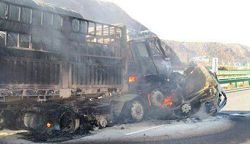 恶报案例:孟兆庆,甘肃省宁县“610办公室”主任,2011年12月23日上午11时,乘坐宁县法院面包警车在高速路上行驶时钻入拖车前底部,油箱起火,引燃大车,火借风势,瞬间吞噬两辆车,孟兆庆当场死亡。