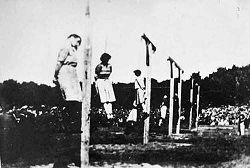 看看历史,咱们也好有一比:纳粹战犯执行希特勒的命令,日本战犯执行东条英机的命令,结果如何?全球缉拿,大狱收押,绞刑侍候。文革刚结束,北京公安局长刘传新畏罪自杀,793名警察被拉到云南秘密枪决,他们不都是执行毛的命令吗?北京身边人,同行昨天事,思思想想可不可怕? 下图为二战后被绞死的纳粹女看守。