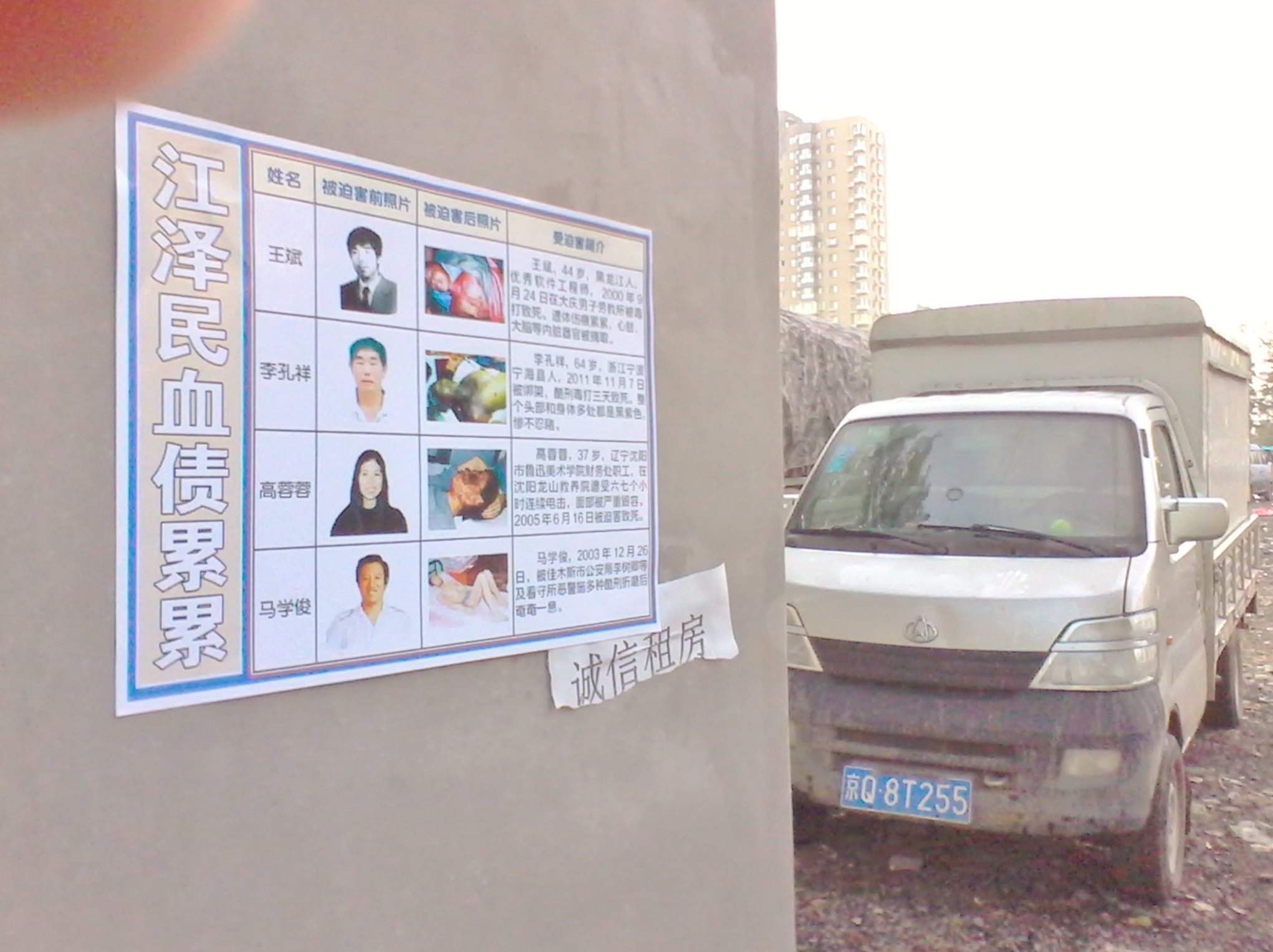 哈尔滨、佳木斯地区的真相海报和条幅